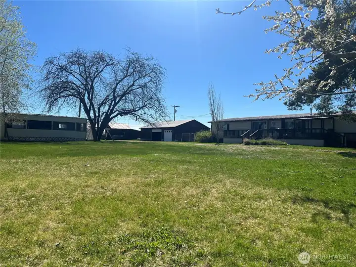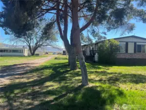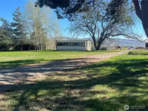 Enjoy the space of this 4-bedroom, 2-bath manufactured home set on just over an acre (1.03+/-). Living room open to the kitchen w/breakfast bar and all appliances, dining room, family room w/propane fireplace adds a cozy touch. The Primary has a large closet, and full bath with a soaking tub. Outside front and back decks—perfect for relaxing or entertaining. Fenced yard, underground sprinklers, garden space, and established fruit trees make outdoor living easy and enjoyable. Property also includes a large 3-bay garage/shop, large shed, chicken coop, underground root cellar, and a bonus space—offering endless possibilities for hobbies, storage, or guest cabin. H-3747/MLS2504506