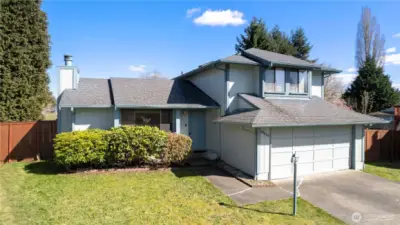 Tacoma Home on a spacious, level 9,600 sq ft lot! Timeless character featuring hardwood flooring and a cozy brick fireplace. Bright kitchen with a full tile backsplash and ample cabinetry. Functional layout with spacious bedrooms, including walk-in closet. Generous living spaces provide comfort and flexibility for everyday living. Additional highlights include an attached garage, ample parking, and a fully usable yard with room to garden, entertain, or expand outdoor living. All appliances included. Quiet cul-de-sac living, just minutes to JBLM, I-5, shopping, parks and everything you need!