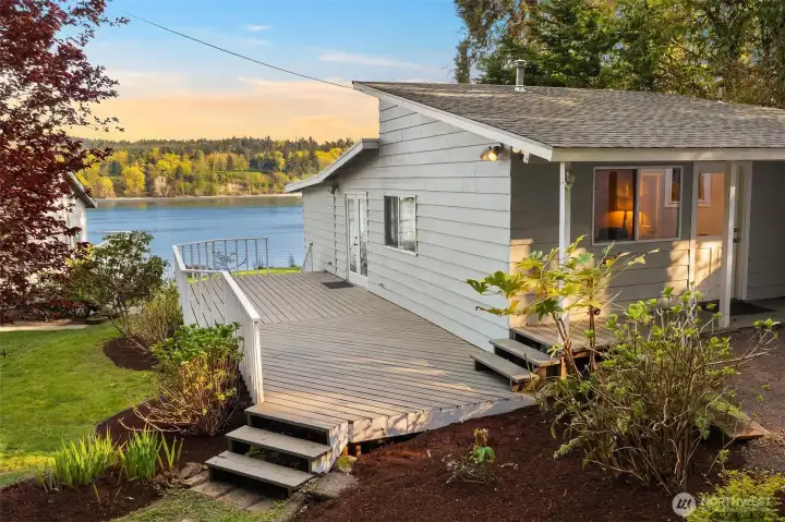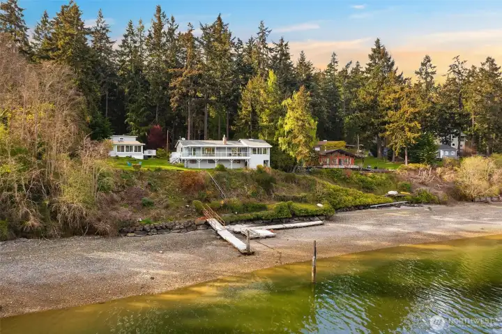 Coveted Burton Loop waterfront on Vashon Island, never before on market! Original homestead featuring two homes (2145sf & 730sf), two garages, and a large shop—rare flexibility for multi-gen living, studio use, or potential for income-production. Southeast-facing orientation offers peaceful mornings filled with marine life and birdsong. Tucked away in the protected harbor, boaters and water enthusiasts can enjoy an exceptionally rare, grandfathered-in dock plus permitted buoy coupled to 130ft of waterfront with rock bulkhead. Expansive wrap-around decks and outdoor firepit invite year-round enjoyment. Recent updates include new roofs, interior paint, carpet, gas furnace, and water heater. Main house primary bedroom offers grand windows giving full morning light and a partially finished basement is ready for your final vision of expansion. Minutes to Harbor Mercantile, Burton Coffee Stand, and Quartermaster Marina. Truly a unique opportunity to own legacy waterfront with unmatched flexibility, function, and enduring appeal.