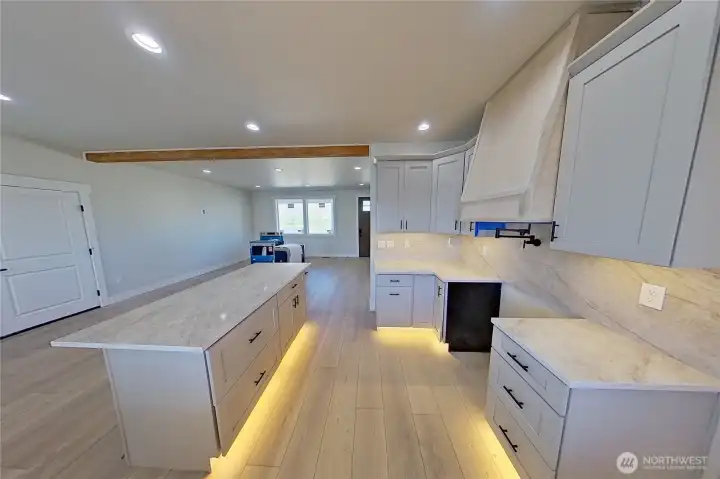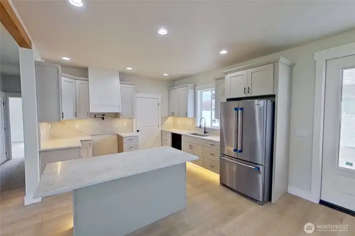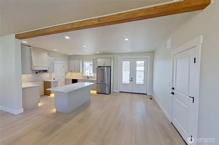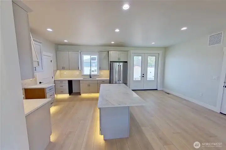 Golf course living at its finest! This expansive 2-story home offers 4 bedrooms/2.5 baths, a large bonus room, attached 3 car garage & EVEN a 28' x 32' detached shop! Open concept living & dining room with French doors that lead out to the covered back patio. The chef's kitchen features a center island with bar seating, quartz counters, walk-in butler's pantry, hood fan and under cabinet lighting! The primary bedroom is on the main level with a walk-in closet and deluxe bathroom. 3 additional bedrooms are located upstairs along with the laundry room & a large bonus room with incredible golf course views and 100" TV. Fully fenced backyard with front & back landscaping/sprinkler system! The detached shop has 14' ceilings heights & a bathroom with a shower for convenience. Located steps from the Rock Island golf course!