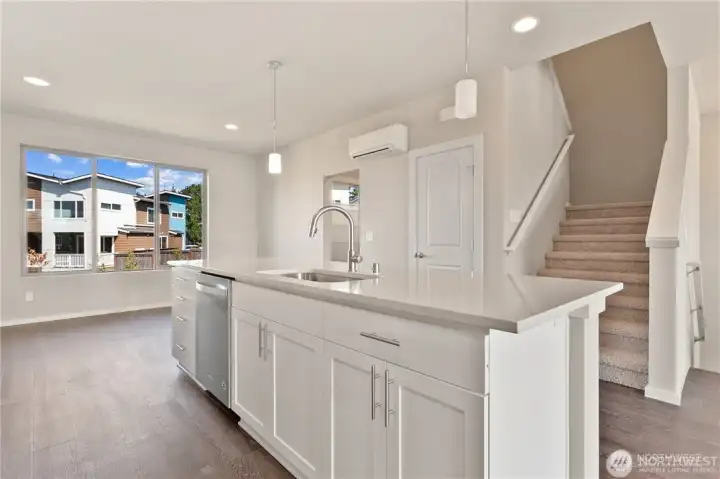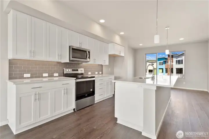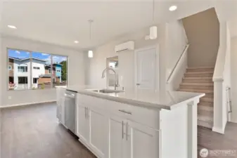 Beautifully upgraded, Residence D Home offered at Materra at Greenbridge by Conner Homes. Greenbridge is a master-planned community close to parks, schools, downtown Seattle & SEATAC. This spacious, contemporary, 3-story townhome has A/C, attached 1 car garage+shop, & downstairs bedroom with in-suite 3/4 bath; Great Room on Main features kitchen with quartz counters, tile backsplash & walk-in pantry; large living & Dining Areas plus balcony and spacious rear yard. Upstairs includes Master with huge shower & walk-in closet plus two more bedrooms, full bath and utility room.