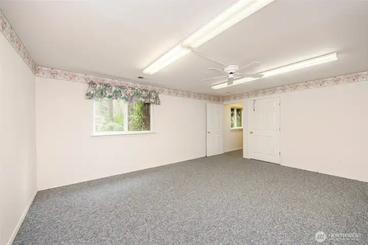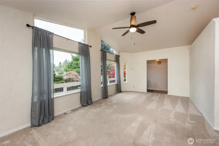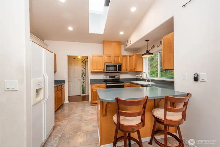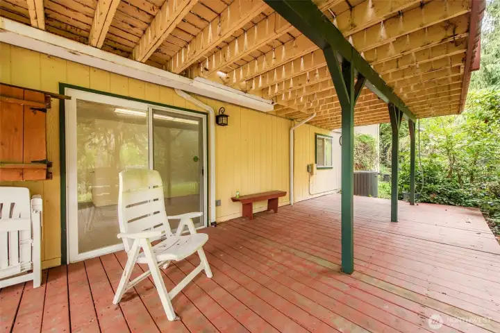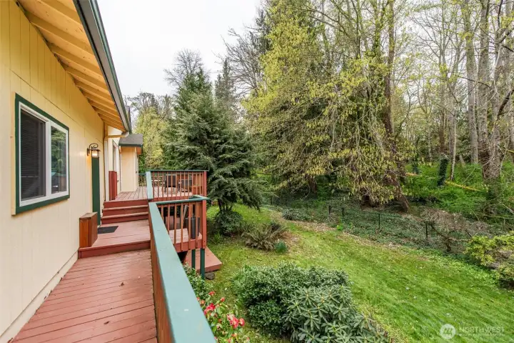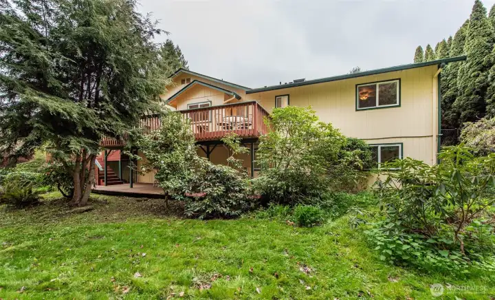 Tucked away on a wooded lane is this lovely 3 bedroom home. Traffic noise and lights at night melt away to create a serene environment. Enjoy the narrow lanes for walking, jogging or biking in the neighborhood or take the scenic trail amid the trees along the Dungeness River. This spacious 2,388 sq. ft home allows for an office, two guest rooms and large main bedroom. The recently renovated main bathroom has double sinks and a large shower with exquisite tile work. The downstairs has a bedroom and huge bonus room with private access from the lower deck. Updated kitchen with solid surface counters and stainless steel stove, dishwasher and microwave. New lighting with fans in living and dining areas. New garage door (2025). The second bathroom is updated with new fixtures, paint and lighting. The yards are filled with flowering shrubs and evergreens with newer outdoor lighting. Beyond the backyard is land owned by the Olympic Tribal Land trust filled with forest, and which is unlikely to be disturbed or developed. A clubhouse, pool and golf course are also available to residents