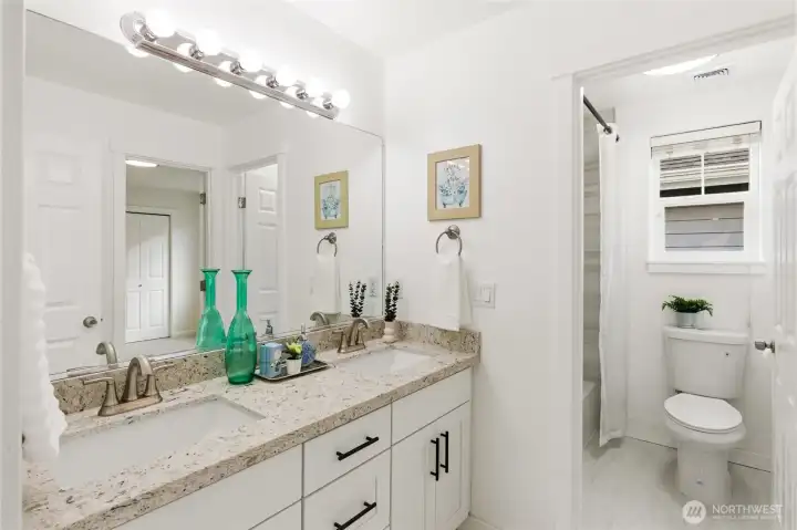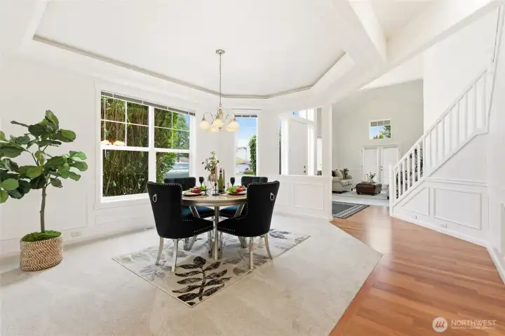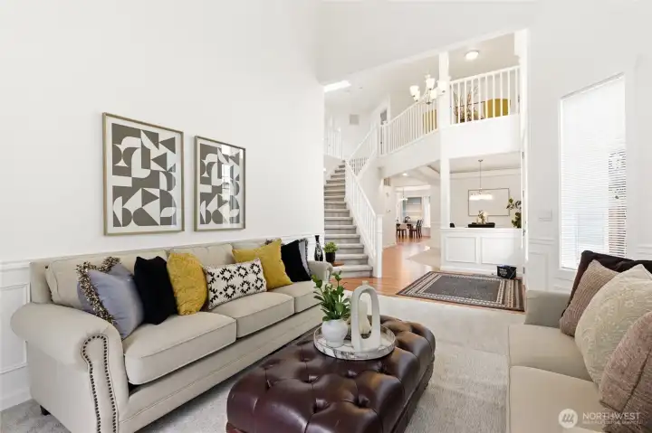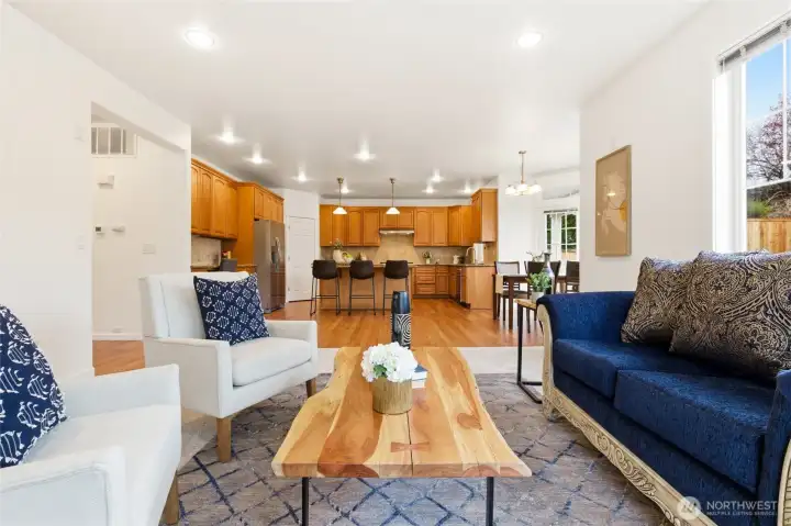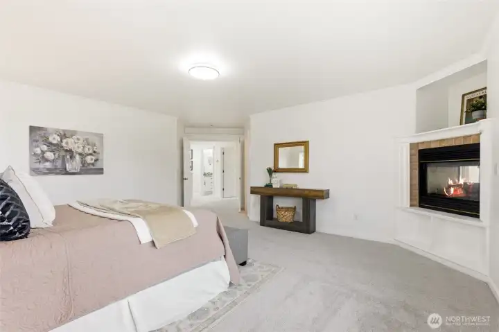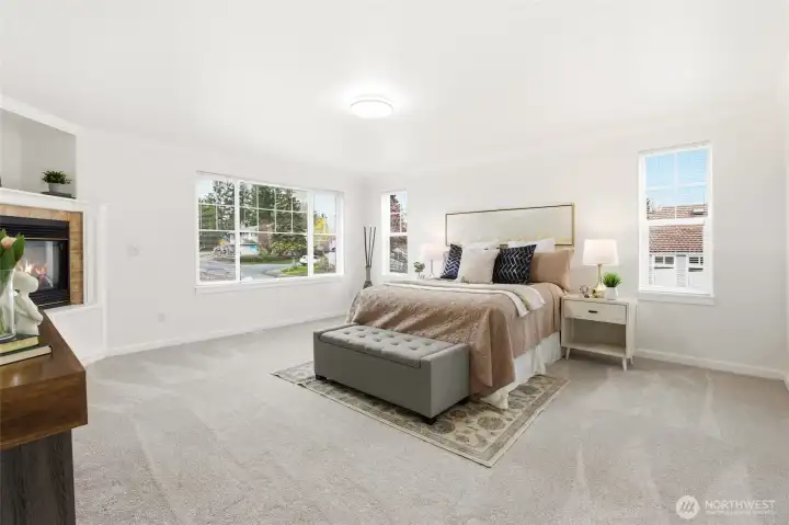 This 3,060 sq ft home on a corner lot features a functional four-bedroom layout and substantial infrastructure updates. The entryway opens with high ceilings and a staircase detailed with integrated foot lighting. Interior finishes include fresh paint, new carpet, and refinished hardwoods throughout the main level. The property is equipped with a new roof, a brand-new full fence, and a new hot water heater, alongside a newer furnace and existing central AC. The floor plan includes two gas fireplaces: one on the main level and a double-sided glass fireplace in the primary suite that serves both the bedroom and the primary bath. The outdoor living area features a patio equipped with an outdoor sink and an outdoor fireplace, creating a dedicated space for backyard activities. Located moments from Panther Lake and Lake Youngs recreation, this residence combines a spacious interior with a brand-new perimeter fence and functional outdoor amenities.