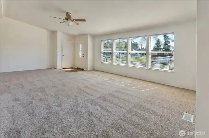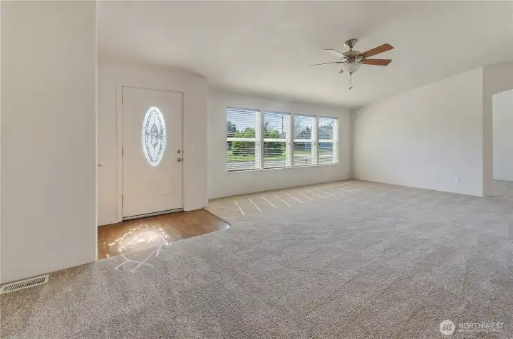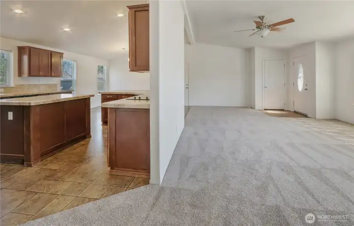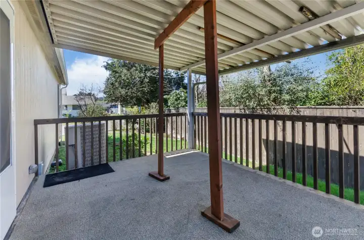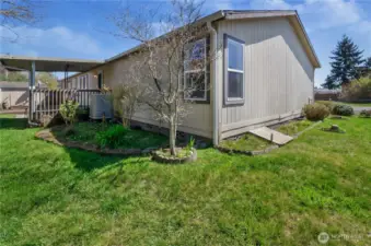 Welcome home to this beautifully refreshed double-wide manufactured residence with title eliminated, perfectly positioned on a desirable corner lot in the Mountain View community. Step inside to discover a bright, open layout with BRAND NEW carpet, fresh interior paint, and vaulted ceilings throughout. The expansive kitchen is truly the heart of the home, complete with a large island, abundant cabinetry, and ample space for cooking. The seamless transition to the dining area and living room make entertaining and daily living a breeze. Offering 2 bedrooms and 2 full baths, the flexible floorplan includes a dedicated office that can easily serve as a 3rd bedroom. The spacious primary suite is a true retreat, featuring a walk-in closet and a luxurious 5-piece ensuite with double sinks, extra vanity space, a jetted tub, shower with built-in seats, and added grab bars. A separate laundry room leads to the back porch and fully fenced yard; perfect for pets, play, or entertaining. Additional highlights include vinyl windows, an efficient heat pump, a storage shed, and RV parking with hookups. The attached garage adds convenience and extra storage. Thoughtfully designed for comfort and accessibility, this home features easy entry with grab bars from both the front entrance and attached garage. A rare blend of space, functionality, and thoughtful upgrades making this turnkey home ready to impress!