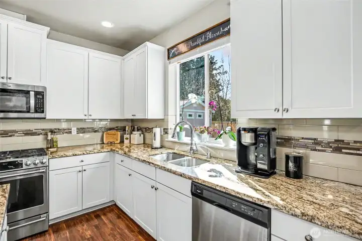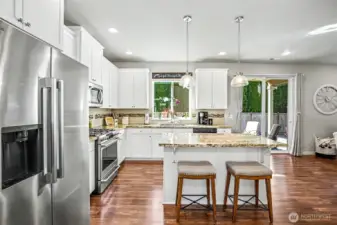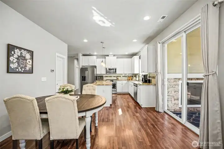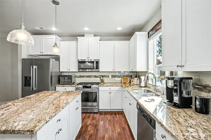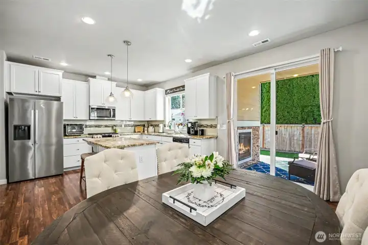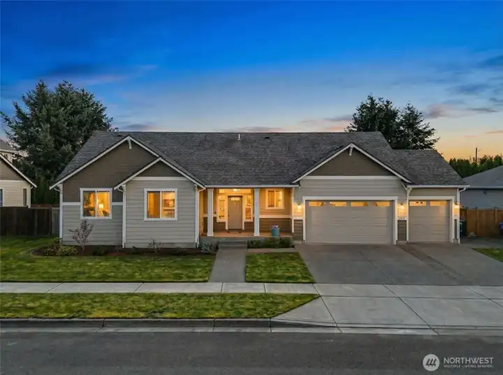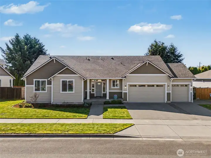 Incredibly rare find! Beautifully maintained Sumner rambler built in 2018, offering thoughtful upgrades and modern comfort throughout, on a culdesac street. This 3-bedroom home features a welcoming covered front porch and an open layout that moves seamlessly into a covered back patio complete with an outdoor gas fireplace, ideal for year-round enjoyment and entertaining. The open-concept great room is filled with natural light, creating a warm and inviting living space with a gas fireplace. A well-designed layout includes ample storage, generously sized bedrooms, and a primary suite with a walk-in closet and private bath. Additional features include a heated 3-car garage with tall ceilings for added storage flexibility, versatile 30amp and 40amp outlets suitable for electric vehicle charging or shop use, and a tankless water heater. The fully fenced, level backyard includes a beautifully hand-laid brick pathway and a low maintenance turf lawn, along with a large storage shed for tools and equipment. Located in a desirable Sumner location with convenient access to local amenities, this home combines functionality, comfort, and style all with one-story living.