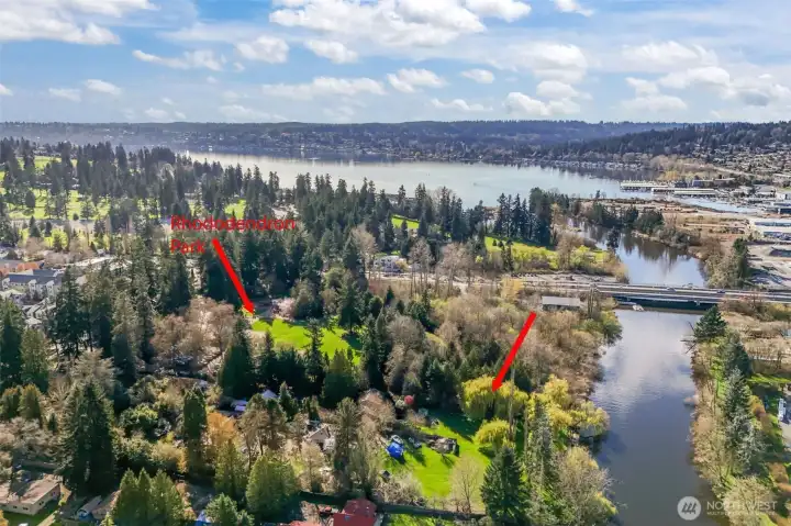 Builder and investor alert for this exceptional waterfront lot in Kenmore. 39,525 sqft with 88 ft of Sammamish river waterfront with an orignial dock next to Rhododedren Park. Possible 5 lot subdivison plus adu /dadu with one lot for affordable housing. Primarily land value with existing nice home on site.