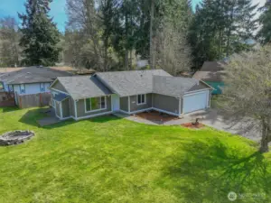 This beautifully updated rambler sits on a large corner lot with views of the lake. Located in the sought out Scott Lake Community, this home is close distance to both the golf course and lake. Seller left no stone unturned when it came to improving the interior and exterior of this home. Features open concept living with many updates that include: Interior- new kitchen (cabinets, countertops, all appliances and island). New LVP flooring and carpet in bedrooms. Fresh paint, new trim, doors and lighting. Exterior-New hardie siding, gutters and fascia boards. Roof only 4 years old! The Scott Lake Community features: golf course, club house, ball field, lake front park complete with play ground, athletic field, kayaking, fishing, swimming area and boat launch. Just minutes away from amenities such as Walmart, Fred Meyer and Costco. Located less than 10 min to I-5.