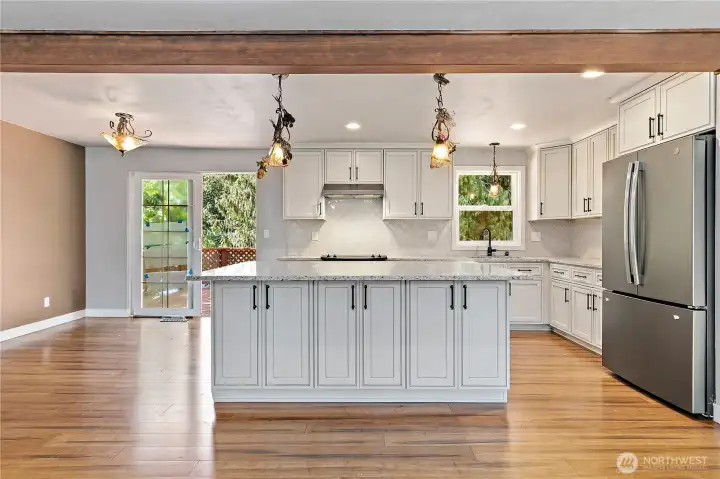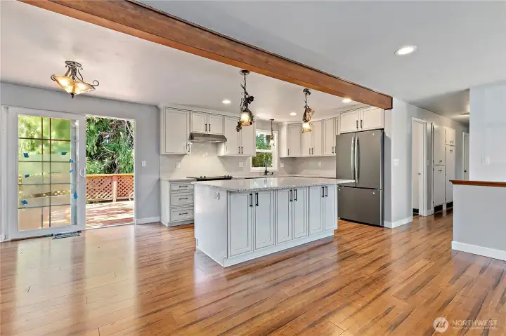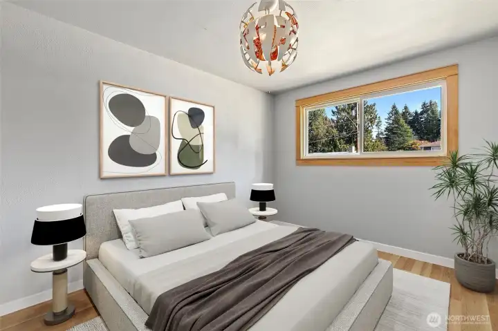 Experience the perfect blend of 1960s craftsmanship & contemporary updates in this Lynnwood home. Perched on a spacious corner lot perfectly situated between Pioneer Park + N. Lynnwood Park, this home offers square footage just shy of 2000, w the heavy lifting already done. Step inside to a 2019 remodel on the main level that turned it into an open-concept layout, anchored by a gourmet kitchen featuring sleek quartz countertops, a stylish backsplash, under-cabinet lighting, & a large island w extra storage + seating for 4. New refrigerator, + dishwasher. 2019 Bamboo flooring flows throughout the main floor, illuminated by updated lighting & 2019 oversized energy-efficient windows that flood the home w natural light. 2019 furnace! Roof ~10-11 years old. Interior painted within the last year; exterior refreshed 2-3 years ago. Hall bath incl new vanity, tile, + fixtures. 3 BR featuring original HW, incl a primary suite w a private 3/4 bath, & extra insulation in bedroom directly across from it. Lower level w large bonus room (perfect for a media room or gym). Laundry/mudroom w folding station + door access to outdoor living w sprawling backyard, complete w storage shed & producing cherry tree. 4th BR, & a half-bath w room to expand into full bath. Fireplace on both levels of the home. Garage w newer opener. Close to Mall, Lyn Rec Center, Light Rail, 196th! This home is "mostly there" & just needs final personal touches to become the neighborhood standout.