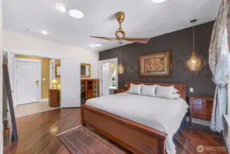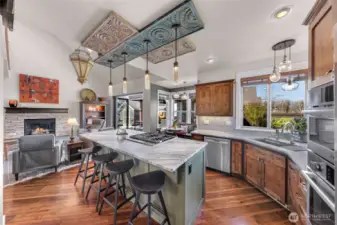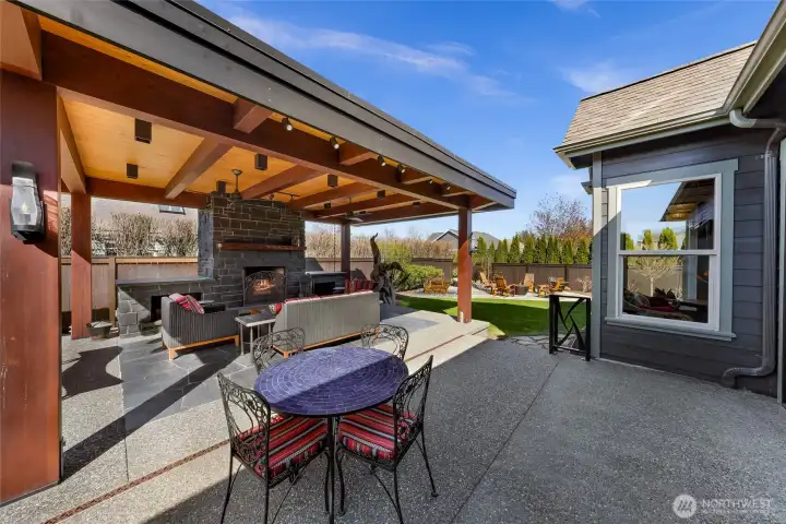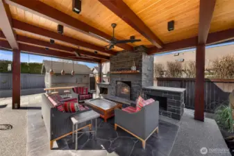 This is the one buyers wait for—a home that lives as well outside as it does inside. Set on an expansive ~10,000 sqft corner lot, the backyard is a true showstopper. A custom-designed covered outdoor living pavilion with a statement wood-burning fireplace creates a year-round gathering space—perfect for hosting, watching the game, or unwinding by the fire. The garden area features beautiful hardscaping, a plumbed propane fire pit, fountain water feature and mature landscaping that give it a finished, high-end feel that’s nearly impossible to replicate. Inside, the same level of intention carries throughout. Offering 2,725 sqft, the home features a main-level primary suite, while upstairs includes two bedrooms, a guest bath, utility area, and a large, versatile bonus room—flexible space that fits how people actually live today. The fully remodeled custom kitchen is a standout, showcasing high-end appliances, custom cabinetry, and a large island built for entertaining. It opens seamlessly to the main living area with soaring 18-ft vaulted ceilings and an upper-level catwalk that adds both architectural character and connection. A dedicated dining room and a second living space or office just off the entry provide even more functionality. This is PNW living at its best—located in a quiet, established neighborhood and designed for connection—paired with a home that’s been thoughtfully upgraded where it matters most.