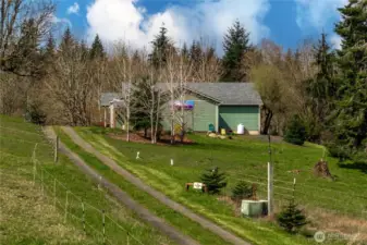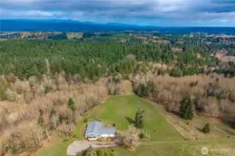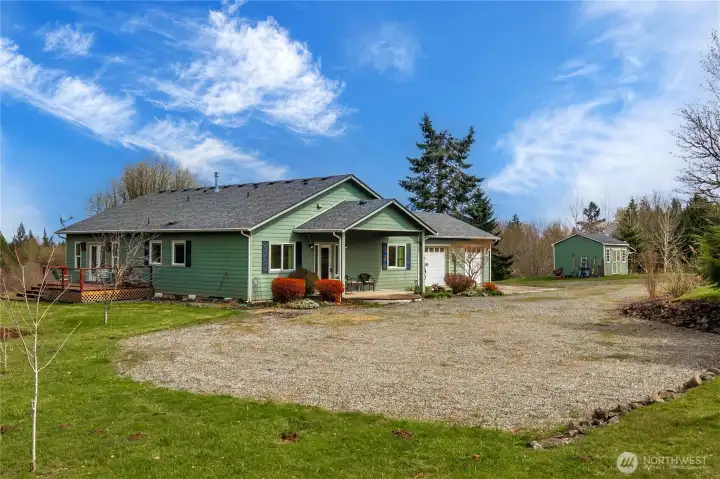 Beautiful 5 acre rambler up for grabs! Michigan Hill property built in 2016 features 2 horse stalls and a fenced acreage. Enjoy privacy among picturesque and territorial views. The home features a covered porch, outdoor deck space, beautiful scenic windows, walk in pantry, utility room off the garage, propane fireplace, an open kitchen with quality cabinets and stainless steel appliances. Thoughtful floor plan utilizing natural light throughout, primary bedroom with attached bathroom featuring a walk in closet, soaking tub, shower and double sink. The open layout looks out to the rolling pastures, woods and nature. The home sits on a dead end so if privacy and tranquility are your goals then look no further! Large garage space and an outbuilding for all your accessories- it's ALL here.