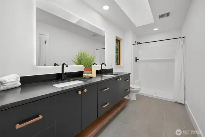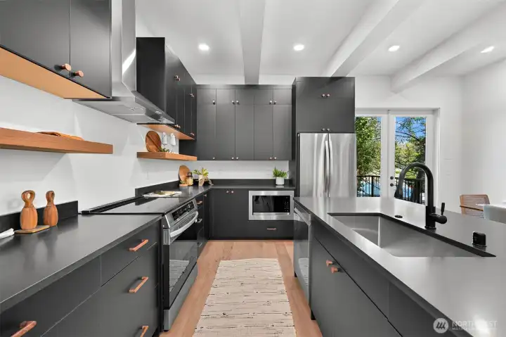 Hip, brand-new custom-built home set on over a quarter acre at the base of Galbraith Mountain. This 3 bed, 2.5 bath home blends modern style with thoughtful craftsmanship, featuring engineered hardwood flooring, honed granite countertops, a heat pump, and custom cabinetry throughout. Pella aluminum-clad wood windows bring in natural light, while a blackened steel fireplace creates a bold focal point in the private, tree-lined living room. Enjoy exceptional outdoor living with two decks—one covered for year-round use—and two fully fenced yards. A generous 38x24 shop offers flexibility for hobbies, storage, or workspace. Just steps from trails and minutes to Whatcom Falls Park, this home delivers the perfect blend of comfort and adventure. A unique opportunity to live where you play!