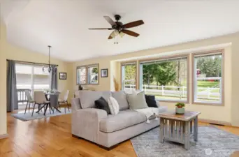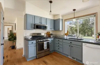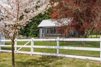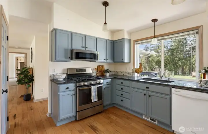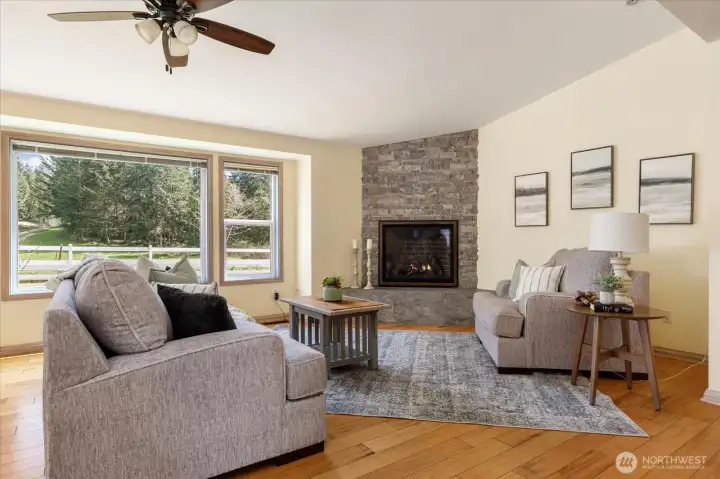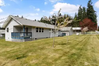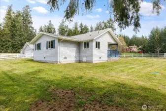 Welcome to your South Whidbey mini-farm retreat! This beautifully updated 3 bed, 2 bath rambler sits on nearly an acre (+/-) of sunny, lush, fully fenced land — the perfect blend of comfort, privacy, & country living. Vaulted ceilings & skylights fill the great room with light, while custom wood finishes handcrafted doors, wainscoting, trim & front door by the seller — an artisan woodworker — add timeless warmth throughout. Wood floors, ceramic tile and wall to wall carpet in the bedrooms add to the charm of this one level home. The primary suite features a private deck, walk-in closet, & custom step-in shower. Outside, enjoy a deck right off the dining area, fruit trees, raised garden beds, Pigeon house/chicken coop, & an oversized detached 2-car garage. Adjacent to Trillium Woods trails & minutes from Freeland's shops & dining — tranquil countryside charm with everyday convenience.