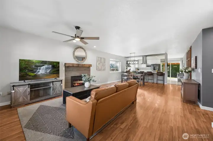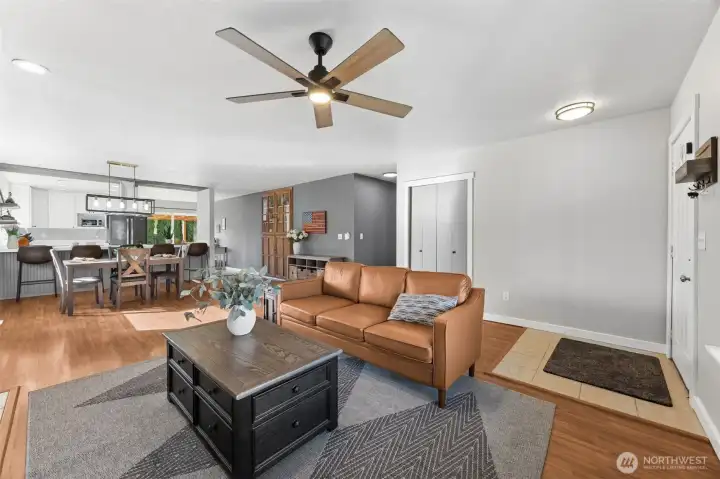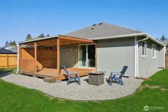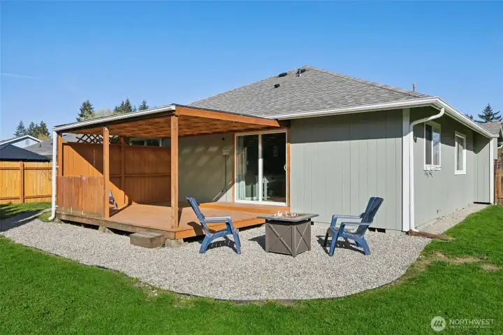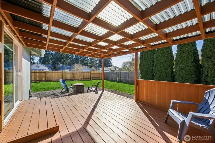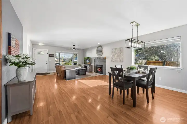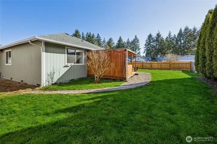 Assumable VA Loan at 2.875% — an incredible opportunity! Welcome to this beautifully updated single-story home offering 3 bedrooms and 2 bathrooms, perfectly situated in the highly desirable in-town area of Yelm. Set on a spacious corner lot, this property features an open-concept layout ideal for comfortable living and entertaining. Inside, you’ll find well-maintained interior paint completed within the past five years, with freshly painted baseboards adding a clean, refreshed touch. The expansive kitchen has been thoughtfully updated with new upper cabinetry, painted lower cabinets, a new dishwasher, and a new range hood. Epoxy quartz-look countertops, a breakfast bar, and direct access to the covered back deck make this space both functional and inviting. The dining area flows seamlessly into the spacious living room, complete with a cozy fireplace. The primary suite offers a private retreat with an ensuite bathroom and walk-in closet, while two additional bedrooms and a full bath provide flexibility. Enjoy the covered front porch and expansive covered back deck—perfect for year-round outdoor living. The fully fenced yard includes new fencing, a double gate, and RV parking. Additional highlights include a 2-car garage, attached carport, and ample parking. Finished with brand-new exterior paint and ideally located near Highway 507, JBLM, shopping, dining, and parks—this home offers comfort, convenience, and value.