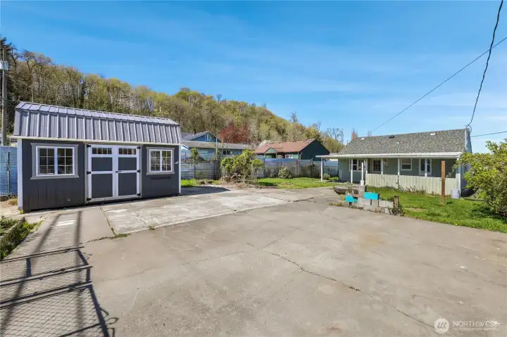Welcome to this charming and light-filled 2-bedroom bungalow, perfectly situated on a spacious corner lot in Tacoma! This home efficiently maximizes its footprint, featuring original hardwood floors that flow throughout the living spaces, creating a warm feeling. The kitchen leads directly to a private, covered patio with large backyard for gardening and entertaining. Enjoy AC with your very own Mini-Split. Fully-fenced yard and a large detached shed for extra storage and off-street parking. I-5 is 2-minutes away, entertainment, parks, shopping, and restaurants. Property is zoned RCX for possible residential/commercial use.