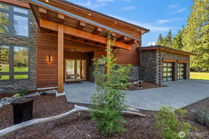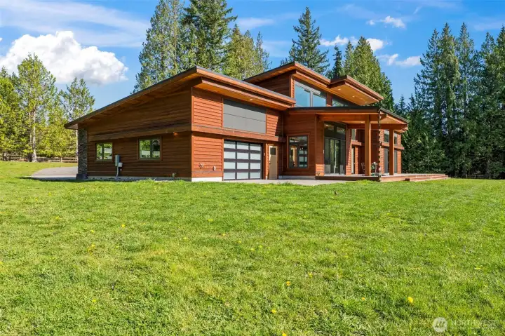 You'll feel at home the moment you walk in. Discover this stunning custom PNW modern contemporary 3 bedroom, 2.5 bath home with main level living designed for comfort and style. Step inside to soaring ceilings, natural wood beam accents, and light-filled open spaces that feel both warm and elevated. The kitchen impresses with a butler's pantry, granite countertops, and premium stainless appliances. Radiant heated floors run throughout the entire home as well as the garage. Outside, unwind on the expansive Trex deck, already plumbed for a hot tub and outdoor kitchen. Enjoy peaceful surroundings just minutes from your own private community beach, the casino, and easy highway access. Set on five peaceful acres, homes like this are a rare find.