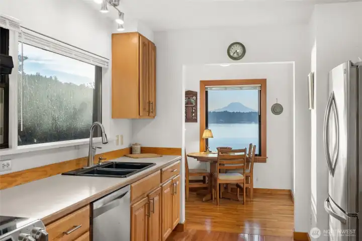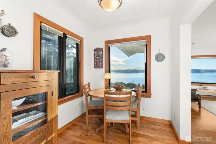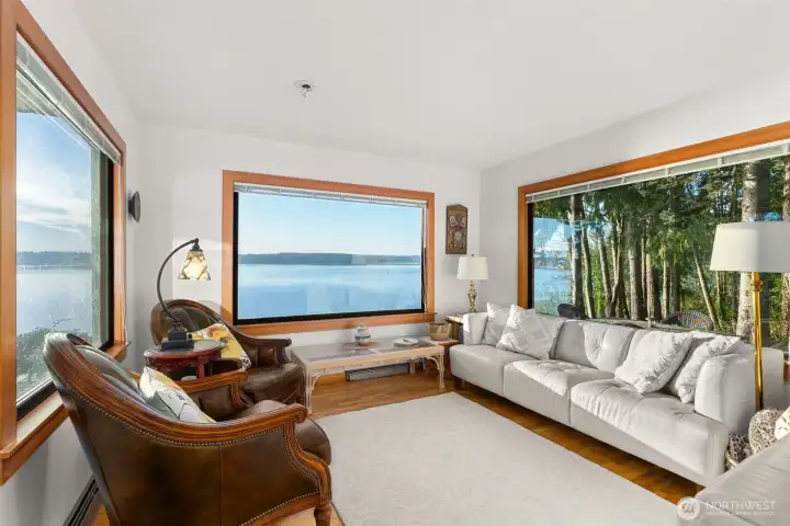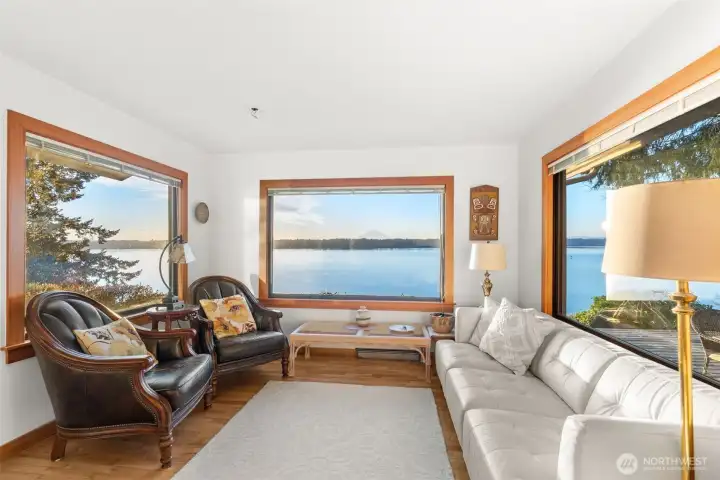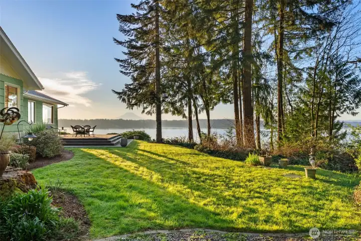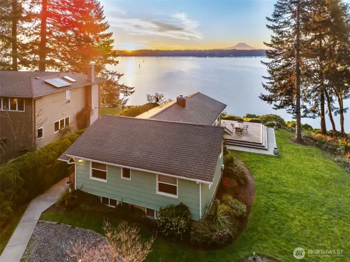 Escape to timeless serenity at a historic 1925 Cooper Point high-bank bungalow offering rare solitude on 2.07 wooded acres. This charming 1,463 sq ft home commands breathtaking panoramic views over Budd Inlet, where you can watch ships navigate the Port of Olympia, catch exciting sailboat races, and enjoy the ever-changing tides and marine life of South Sound. Perched on a private high bank, the property delivers sweeping vistas of majestic Mount Rainier dominating the horizon. On crystal-clear days, a telescope reveals the distant peaks of Mount Adams and Mount St. Helens, a view that never loses its magic. Surrounded by towering evergreens and lush landscaping, the home feels like a private Pacific Northwest retreat while remaining remarkably convenient, just two miles from West Olympia amenities, shopping, dining, and downtown. Inside, the warm, light-filled interiors feature classic wood finishes, cozy bedrooms, and thoughtful updates that honor the home’s rich heritage. Outside, a generous deck and expansive lawn invite morning coffee with birds flying overhead or sunset dinners as the sun dips behind the water and mountains. The large lot provides ample space for gardening, play, or soaking in the peaceful forest setting. Blending historic character, unmatched natural beauty, and convenient location, this Cooper Point gem is a true legacy property. Own your slice of Olympia's most coveted high-bank waterfront views where solitude and stunning scenery meet every day.