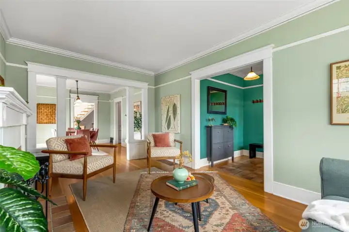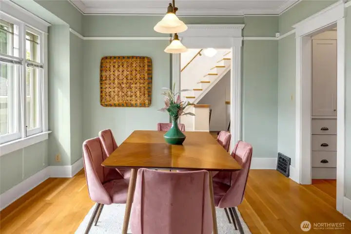Set above a quiet, tree-lined street in Judkins Park, this 1910 Craftsman pairs historic charm with easy city living. Just blocks from the new Judkins Park Light Rail Station, you’re moments from downtown Seattle yet tucked away in your own calm retreat. Step up to the covered front porch and through the welcoming formal entry, where tall ceilings, big windows, and rich wood floors set the tone. The craftsman details wrap you in warmth and authenticity. The flow of the main floor moves with quiet confidence—from the cozy living room to the generous formal dining space to a fantastic eat-in kitchen built for good food and great conversation. The main floor bonus- a brilliant sunroom opens to a deck that overlooks your private, fully fenced backyard and garden—your own urban oasis. A comfortable bedroom and full bath with clawfoot tub complete the main level. Upstairs, a spacious second bedroom plus a bonus flex space—ideal for office, studio, or lounge. Down below, the unfinished basement provides the perfect spot for storage, a workshop, or future projects. It’s a timeless Seattle home that feels both grounded and alive—a place where character meets comfort.