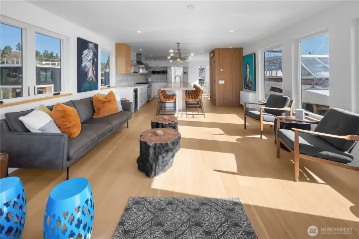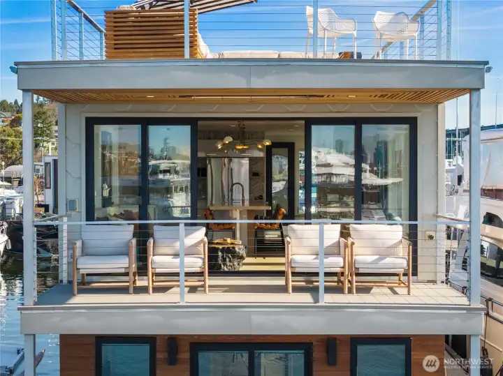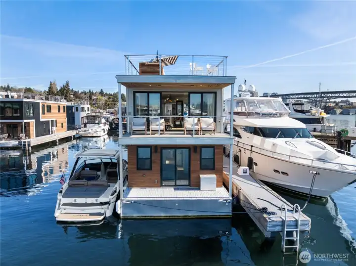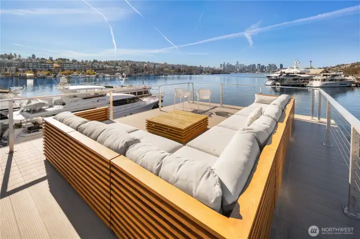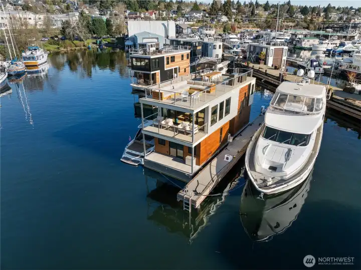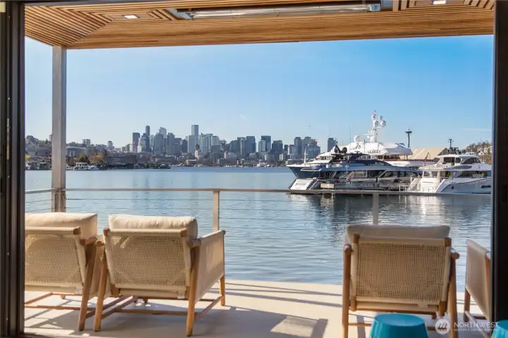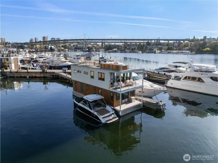 Unrivaled end-of-dock living with sweeping, unobstructed views of Lake Union & the Seattle skyline—this custom houseboat offers a truly unparalleled in-city waterfront lifestyle.