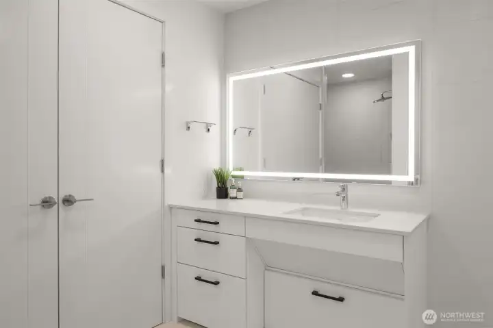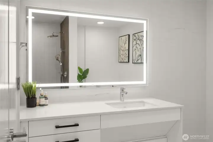Experience modern urban living in this ADA custom unit at GIS Plaza in Downtown Bellevue. This 2nd-floor one-bedroom features soaring ceilings, engineered hardwood floors, operable windows, and A/C. The open-concept kitchen boasts Miele appliances, quartz countertops, and sleek finishes. The spacious bathroom offers Grohe fixtures, ceramic tile, and heated floors. Enjoy added perks like a secure garage and an expansive rooftop deck with stunning views. Ideally located next to the Bellevue Library, playfield, and all downtown amenities—this is city living redefined.
