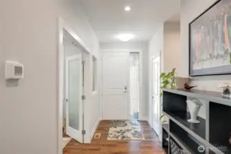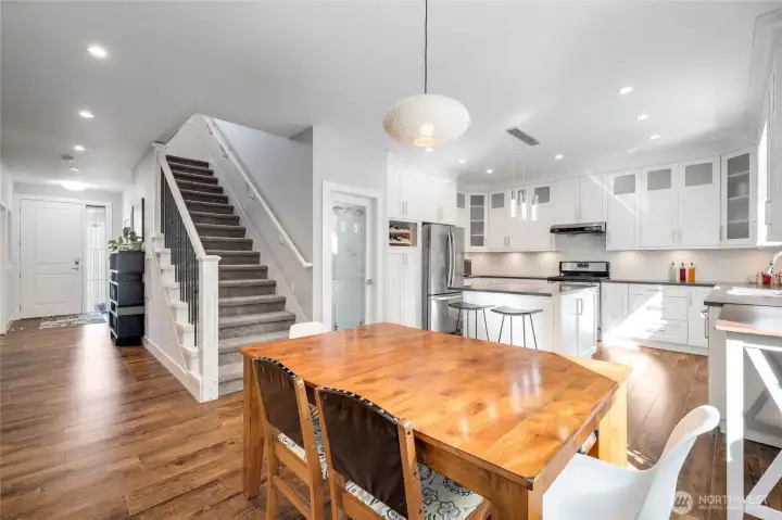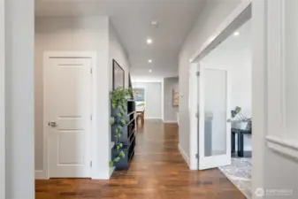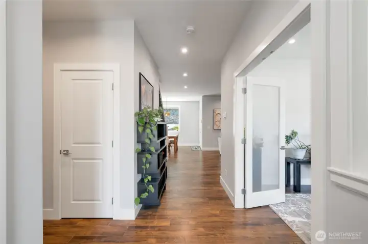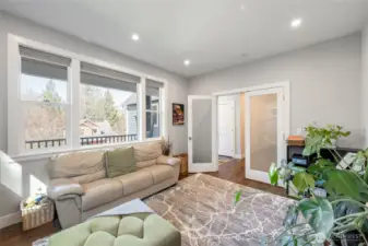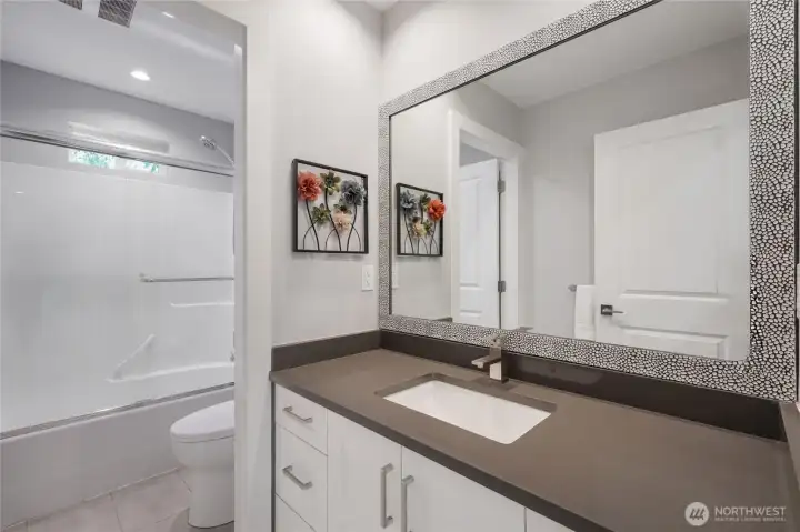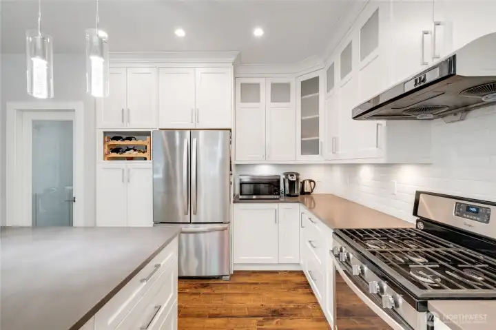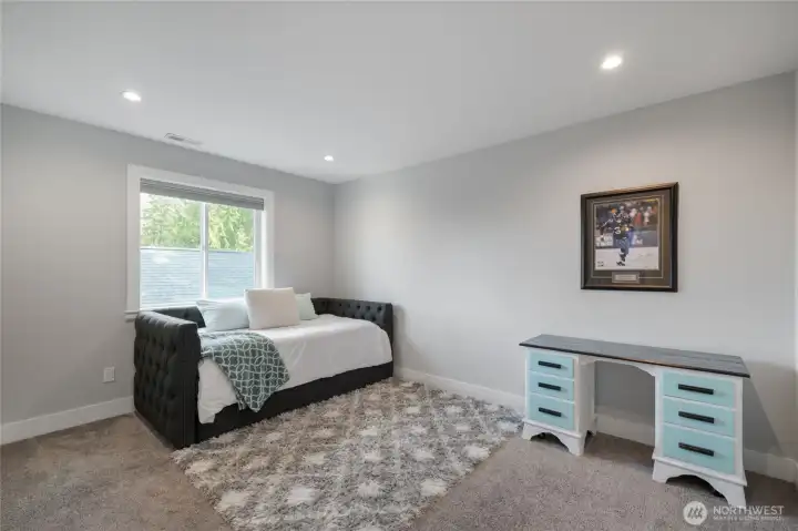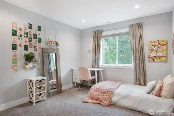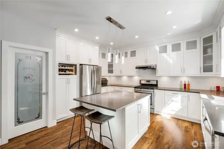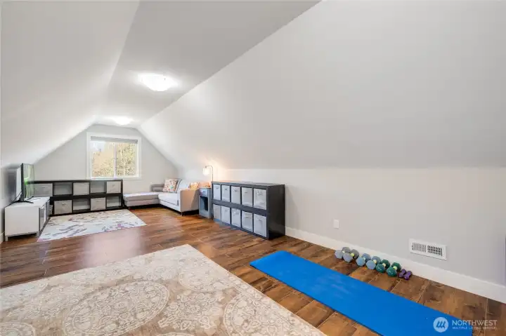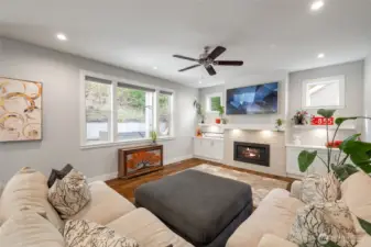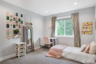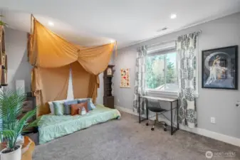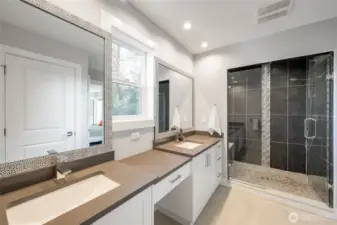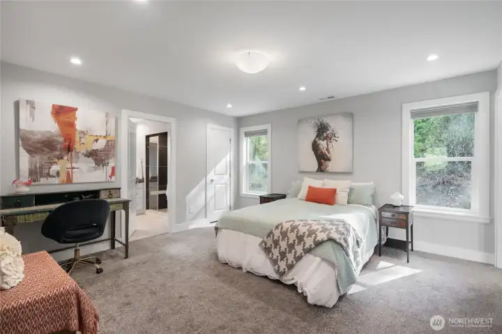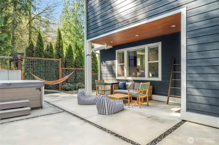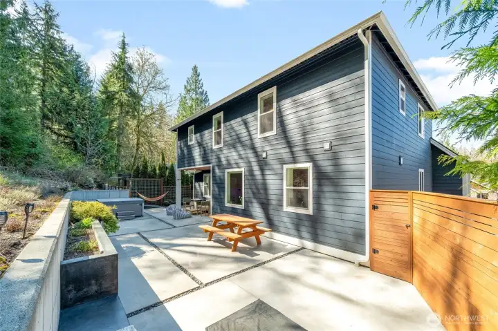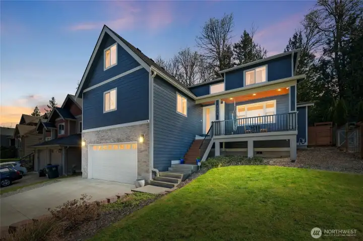 This exceptional 4-bedroom home offers the best of indoor & outdoor living for an active Bellingham lifestyle just steps from a trailhead to Galbraith Mountain’s world-renowned biking and hiking trails. The main floor features a den/office with French doors off the entry, and a hallway that flows into a large, inviting great room with fireplace and built-ins. The open kitchen is perfect for gathering and features a central island with eating bar, lots of cupboards and counter space, and a walk-in pantry. A nicely appointed powder room and a large laundry room are also on the main. Upstairs, the spacious primary suite offers a large walk-in closet with custom built-ins and a spa-inspired bathroom with double vanity, private toilet, and oversized marble-tiled shower. There are 3 additional large bedrooms, a versatile bonus room, and a full bathroom on the upper level. Quality craftsmanship shines with an upgraded trim package throughout, including solid doors and trim wrapped windows. Modern comforts include on-demand hot water, a high-efficiency furnace, and central air conditioning. Also, you will love the high quality “up-down” custom window coverings. The outdoor living space is exceptional, featuring a large, professionally designed patio, attractive terraced walls, covered and open-air entertaining areas, and a premium hot tub—it's private & ideal for year-round enjoyment. The home also features a large 2-car garage with lots of space for storing equipment and bikes.
