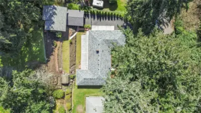 Rare Opportunity! Spacious 2,000+ sq ft single-level rambler set on a large, beautifully landscaped lot offering exceptional privacy with mature trees for a rural feel just minutes away from shopping, dining, and major freeways. This property is a dream setup for auto enthusiasts, hobbyists, or anyone needing serious workspace. In addition to the home’s attached two-car garage, there's also a separate detached garage and carport topped by a massive shop, providing incredible flexibility for projects, storage, or creative pursuits. Inside, the freshly painted interior and brand-new carpeting create a welcoming, move-in ready space. The spacious living room features a wall of windows overlooking the patio and tranquil backyard. The remodeled kitchen boasts warm wood cabinetry, granite countertops, stainless steel appliances, and a gas range. The generous primary suite easily accommodates a king-size bed and includes an ensuite bath, walk-in closet, and French doors opening to a private deck, offering a peaceful retreat. Additional spaces include a dedicated family room (or home office?) off the living room and a large craft/hobby room with extensive cabinetry and storage, ideal for projects or creative work. Step outside to enjoy the terraced backyard with greenhouse and garden space, perfect for gardening enthusiasts. Bonuses include RV/boat parking and A/C. A truly special property that must be seen to be fully appreciated.
