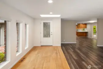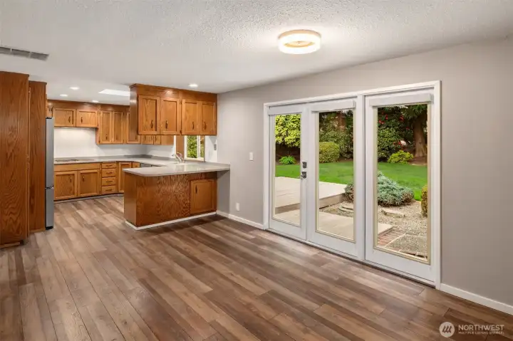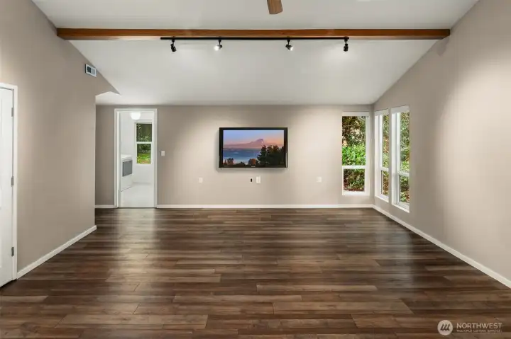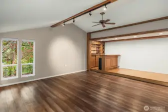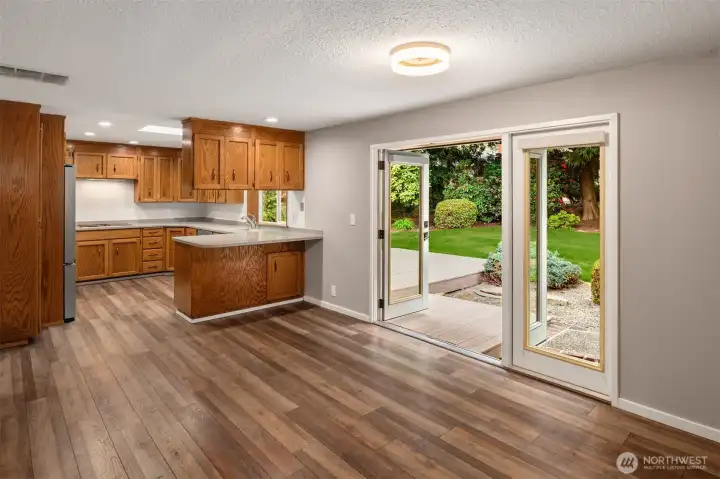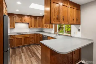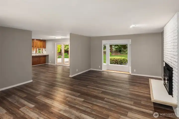 Perched atop a majestically landscaped 1/3 acre dream lot with private evergreens & lush ornamental gardens, this sprawling 2,017sf mid-century rambler is a solid move-in ready gem! Captivating curb appeal with fresh paint, new roof & courtyard entry with extensive brick accents. Loaded with modern updates, the spacious flowing floor plan features tall windows & copius skylights filled with natural light. Hardwood foyer opens to sunken living room with floor-to-ceiling fireplace & bay window. Formal dining with expansive french doors opens to stunning oak kitchen with seamless Corian counters & stainless steel appliances. Massive family room with soaring cathedral ceilings & wet bar opens to impressive laundry room with vaulted ceilings, skylights, abundant cabinetry & luxuriously updated 3/4 bath. Primary suite with grand walk-in closet. Lavish custom bath with sunken jetted tub & oversized walk-in shower. Designer paint, white millwork, new flooring, on-demand hot water & central A/C throughout. An extraordinary outdoor living oasis, the gorgeous backyard features manicured grounds, dual entertainment decks, wrap-around bench seating & patio wired for hot tub!