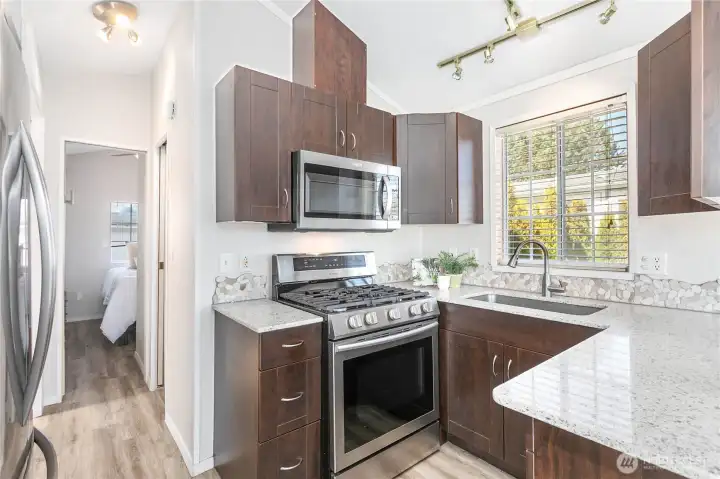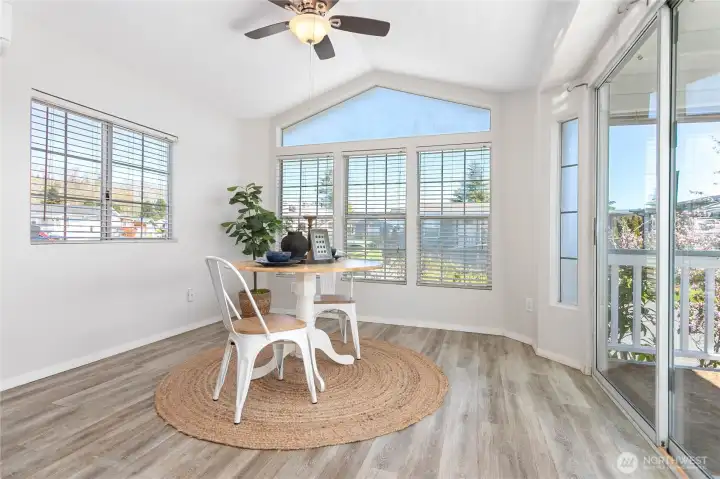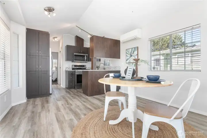 Great vacation home or very affordable year-round living in this updated & freshly painted 365 Latitude 49 home nice and close to clubhouse! Gated sought after community close to beautiful Birch Bay beach, shops, water park, restaurants, close to I5 & more. Enjoy larger living room (could be utilized as more bedroom space), kitchen, dining area, bedroom & 3/4 bath. Entire interior freshly repainted, newer LVP flooring, quartz counters, stainless appliance & more. HP Split heating/cooling throughout. Good size deck to sit and enjoy those beachy summer days & nights. Fenced in yard with storage shed gives nice little private oasis and is great for those fur babies. All very close to the main hub within Latitude 49 where residents enjoy the beautiful outdoor pool, hot tub, sports court, fitness center, clubhouse & more. Beachy vacation home-owning made easy - safe gated community where you can come and go at leisure knowing everything will be waiting for you when you come back -OR- very affordable year-round living with low community dues, utilities, & great amenities.