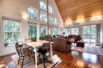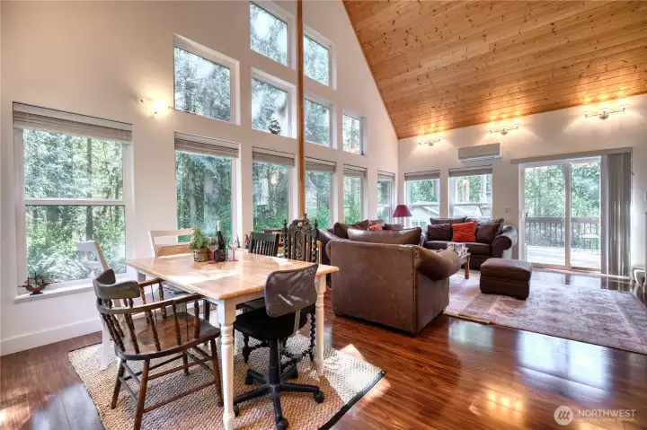 Spectacular 2 bedroom, 2 full bath home on a large lot and in the perfect Point Roberts location! Dramatic high vaulted ceilings and a massive number of windows fill this open floor plan home with natural light. Custom built one owner home and it's just like new! Ready to move into and some furniture can be negotiated with the purchase. Most windows face onto the treed area for a peaceful outlook. Comfort all year round with a mini spit HVAC unit. West facing rear deck is perfect for relaxing and a BBQ. Two storage shed ready for your beach toys and garden tools.