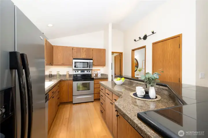 Welcome to Ballard living at its finest! A light-filled home on a quiet street with the neighborhood's best at your doorstep. Natural light pours in from windows on all sides, illuminating vaulted ceilings and a layout designed for both daily living and easy entertaining. The flow from room to room feels intentional, spacious without wasted square footage, and includes things like a large pantry and a dedicated laundry room which add the kind of everyday function that makes a home work. The primary suite has its own private deck, full bath, and a large walk-in closet. Three decks in total offer flexible outdoor space for morning coffee, entertaining, or simply enjoying the trees. Recent updates include a new roof, new hot water heater, fresh exterior paint, most of the interior freshly painted, newer windows and doors, and thoughtful new lighting fixtures and hardware throughout. Radiant heat provides quiet, even warmth throughout the upper level. The back decks are finished in Ipe, built to last and ready for years of use. Outside, mature trees and beautiful established landscaping create a sense of privacy and calm. A rare two-car garage rounds out the package - a genuine find in Ballard. Just minutes from Sunset Hill Park, Golden Gardens, and all that the Ballard neighborhood core has to offer - coffee shops, nightlife, restaurants, boutique shops, farmer's market, easy transit options, and more. Close to everything in your own peaceful spot.