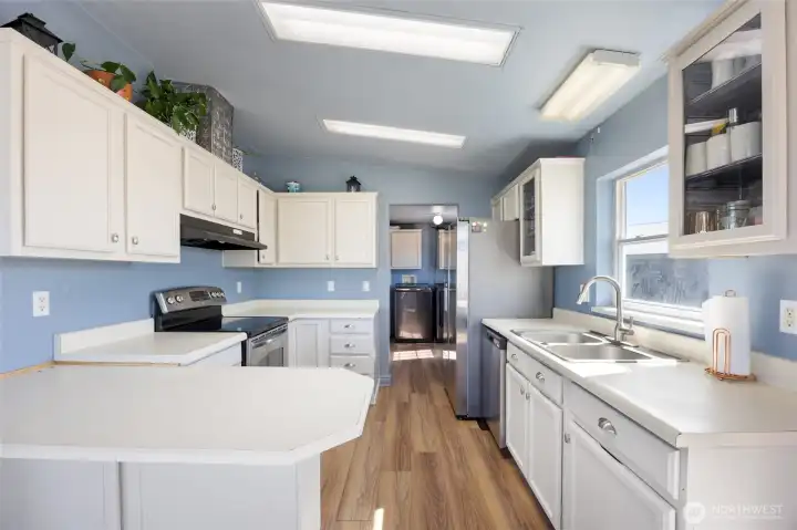 Brand new exterior paint and new LVP flooring throughout add fresh appeal to this beautifully maintained 3-bedroom, 1,404 sq. ft. home on just over an acre. Enjoy breathtaking western-facing panoramic sunset views and an open-concept layout that flows seamlessly from the living area to the kitchen, creating a bright and inviting space for everyday living and entertaining. The spacious primary suite offers a private retreat with dual vanities, a soaking tub, and separate shower. Outside, enjoy a large deck, fully fenced yard, and underground sprinklers—perfect for gatherings and outdoor enjoyment. Additional highlights include a detached 2-car garage and a versatile concrete outbuilding (old CWC concrete plant in the 50-60's) ideal for hobbies, a workshop, or bonus entertainment space. Conveniently located just minutes from the Ephrata Sports Complex, Splash Zone Water Park, and charming downtown Ephrata.