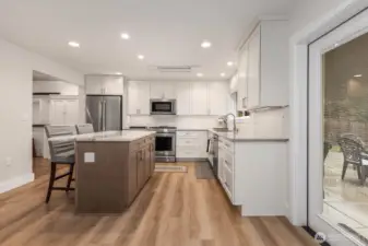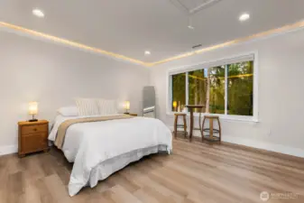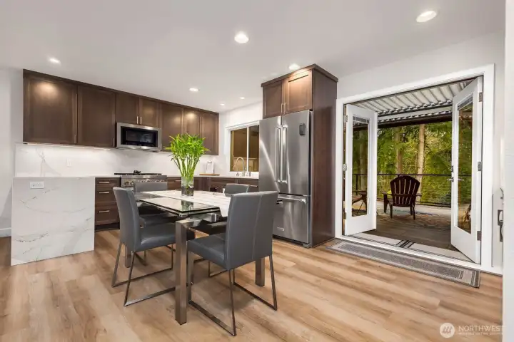 Tucked at the end of a quiet cul-de-sac in the coveted Northshore School District, this Bothell residence rests on a lush quarter-acre greenbelt, offering rare privacy and versatility with a fully permitted ADU. Thoughtfully curated updates and refined indoor-outdoor living create a move-in ready retreat suited for multigenerational living, income potential, or elevated entertaining. Light-filled main living spaces open to a showstopping covered patio featuring articulating louvers, automated screens, a high-output gas heater, and rich cedar accents. A pass-through bar connects seamlessly to the kitchen, creating an effortless year-round entertaining experience. Refreshed baths, a spacious primary suite, and tranquil tree-lined outlooks enhance the home’s sense of comfort and seclusion. The lower-level ADU offers a private, self-contained living experience with a full kitchen, laundry, flexible bonus space, and separate entrance—ideal for guests or premium rental income. Outdoors, enjoy professionally designed landscaping, and a 200 sqft future-ready pad for a luxury outdoor kitchen, or studio. Ideally located near parks, trails, and commuter routes, this is a rare blend of privacy, sophistication, and modern Northwest living.