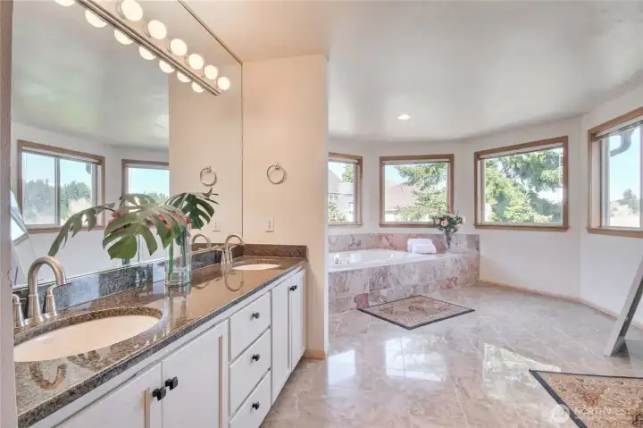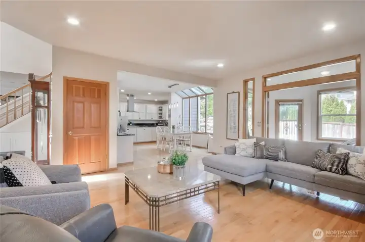 Location! Rare opportunity to own an updated 3,612 sq ft home with spacious 5 bdrms, 3 full baths, Bonus room, Dan/Office(or sunroom) & 3 car garage(EV charging station). Priced to sell! Welcoming at huge covered front porch. Double front door opens to entryway, soaring two-story ceilings & abundant natural lights in, Grand spindle staircase leads to 2nd level, 9ft ceiling in main level. Solid wooden doors. Updated lights. The Formal Living rm has gas FP, wall of floor to ceiling windows, Formal Dining rm look out cozy porch&peaceful front yard. Gourmet kitchen W/famous named appliances (stays), Wall oven, huge Island w/gas cooktop. HW floorings throughout.The oversized primary bdrm has a sitting area, large walk-in closet & beautifully updated 5pcs en-suite bathroom. The main level includes a versatile multi-generational suite & a full bath. Gas FP in Family rm. The spacious laundry room has a sink&W/D stay. Spacious & leveled backyard w/huge patio that provides outdoor entertainment & room for BBQs, lounging, or simply enjoying the peaceful seating & Raised garden beds&garden space. Newer 50-year roof & Leaf protection gutter. Recently cleaned/seeded front&backyard. Desirable schools. Just a few minutes to the well known North Shore Golf Course. Easy commute to Downtown Tacoma, Ruston waterfront activities, Browns Point Lighthouse Park, Dash Point State Park, schools, community center, Restorant, shopping, 320th St Light link station, I-5, SR 18 & SR 167. More and Must see!