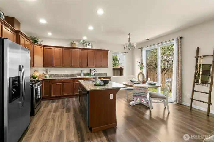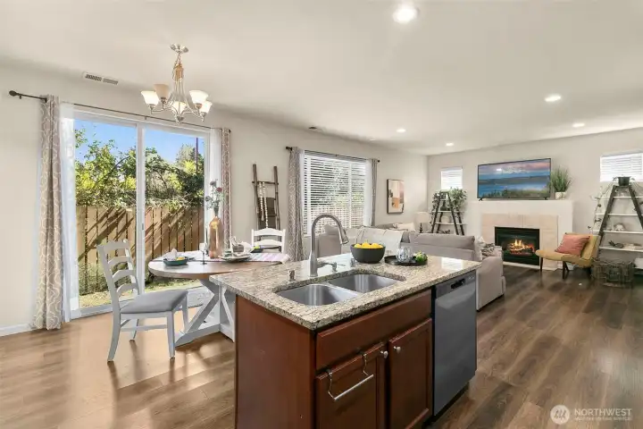 Move-in ready and designed for easy living, this 3 bedroom plus bonus room home offers a layout that feels both open and comfortable from the moment you walk in. Natural light fills the main living areas, where the living room with gas fireplace flows seamlessly into the dining space and kitchen. The kitchen is set up for everyday use and gathering, featuring a large island, slab granite counters, stainless steel appliances, and a gas range. Upstairs, the primary suite offers a quiet retreat with a walk-in closet and a well-appointed 5-piece bath. The bonus room provides added flexibility for a home office, media space, or playroom, giving you options to fit your lifestyle. Outside, enjoy a fully fenced backyard designed for low maintenance, complete with an extended patio that’s ready for relaxing or hosting. Close to shopping, schools, and commuter routes to JBLM and freeways, this home offers the right balance of comfort, convenience, and location.