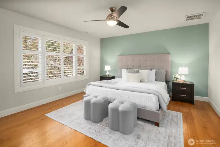 Beautiful turn key Chaffey home on a cul-de-sac in the sought after Sterling Woods community of Timberline. Featuring 4 bedrooms and 2.75 baths, this thoughtfully designed floor plan blends comfort and functionality. Vaulted ceiling and updated light fixtures create an inviting first impression while rich hardwoods span the main level and enhance the open living spaces. Living and family rooms offer surround sound hook up and seamless gathering areas for everyday living and entertaining. The kitchen showcases granite and slate counters, walk in pantry, wine storage, and abundant cabinetry. A main level bedroom with private access to a three quarter bath offers ideal flexibility for guests. The massive primary suite features a spacious bedroom, sitting area with dual sided fireplace, luxurious five piece bath with skylights, dual vanities, soaking tub, separate shower, and California Closets. Upper level also features a large bonus room with wall of windows, two additional bedrooms, and full hall bath. Dual furnaces and central AC provide year round comfort. Fully fenced backyard with patio and irrigation offers privacy for relaxing or entertaining. Pre-inspected for peace of mind. Walking distance to an award-winning elementary school and close to community parks, sports courts and trails. Award winning Lake WA schools.