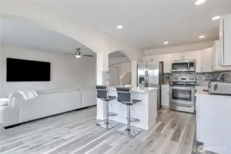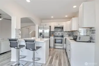 Excellent value meets modern upgrades in this beautifully refreshed 3 bedroom, 2.5 bath home offering 1,860 square feet of comfortable living space. Ideally located near top-rated schools with easy access to Hwy 512 via Canyon and just minutes to shopping and JBLM. Step inside to a fully updated interior featuring brand new flooring, fresh paint, new trim, doors, and stylish fixtures throughout. The spacious kitchen has been completely remodeled with new cabinetry, quartz countertops, stainless steel appliances, and a designer stone backsplash, opening seamlessly to the inviting family room with a cozy gas fireplace. Upstairs, you’ll find three generously sized bedrooms plus a versatile loft area, perfect for a home office, playroom, or additional living space. Bathrooms have been tastefully remodeled with quartz counters and modern finishes. Major system upgrades include a new roof (2024), new furnace and hot water tank, and new blinds throughout, offering peace of mind for years to come. Enjoy outdoor living on the new deck, and take advantage of the epoxy-finished garage for a clean, durable workspace. This move-in ready home combines thoughtful upgrades, functional space, and a prime location, schedule your showing today before it’s gone!