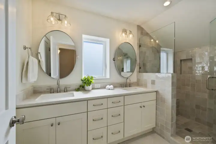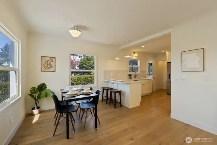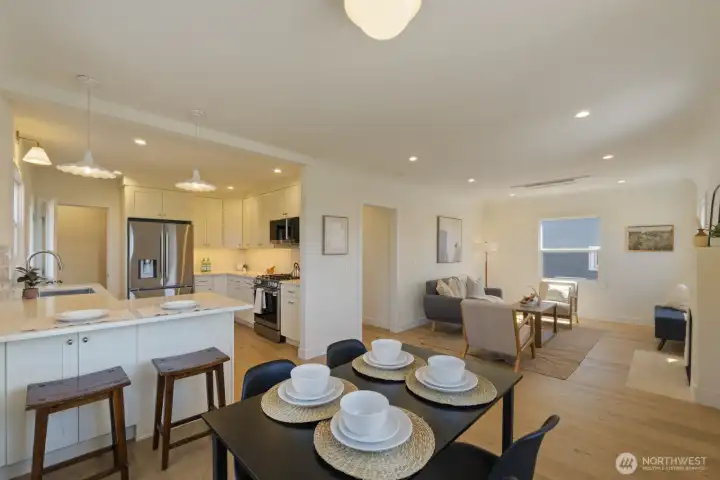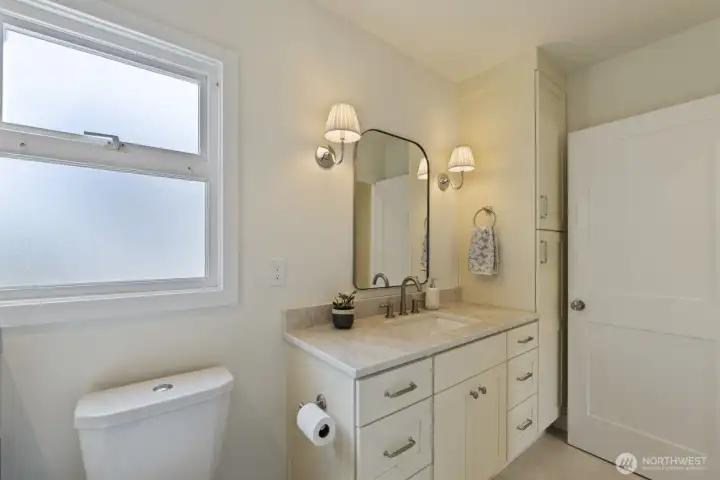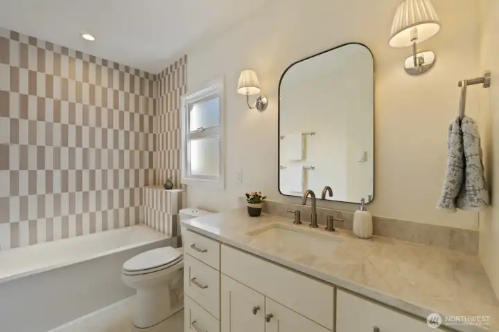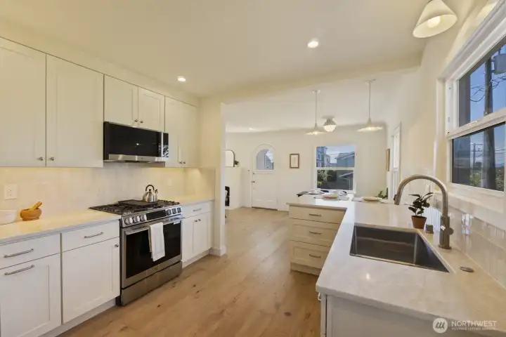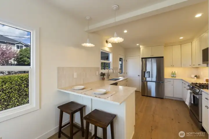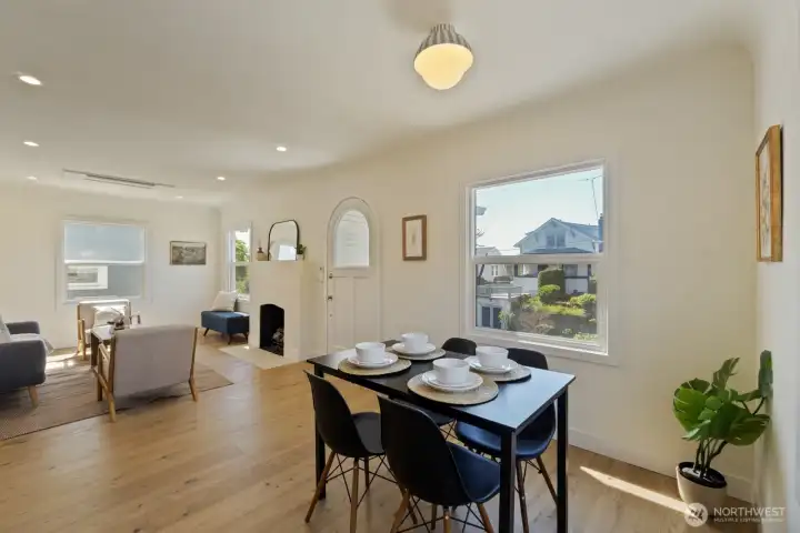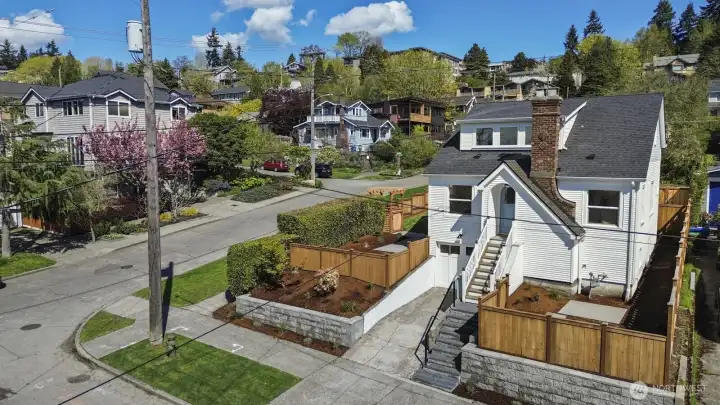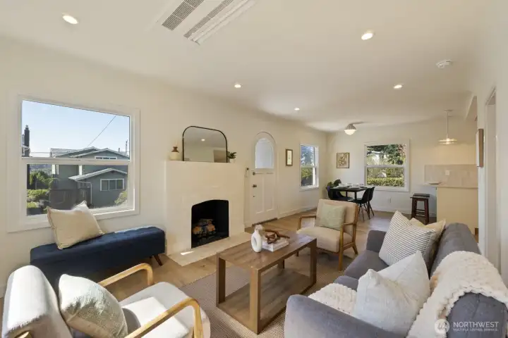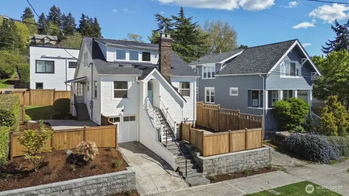 Discover the charm of this stunning 1927 Tudor, beautifully remodeled with modern amenities while preserving its historic character. This spacious home features 4 bedrooms plus a versatile bonus room, and 2.5 baths. Enjoy the newly added primary bedroom dormer, complete with Olympic Mtn Range views, a walk-in closet, an en-suite bath w/ heated flooring & a double-sink vanity. The basement offers potential for an MIL setup, complete with a private bath and separate entrance. Recent updates include a new roof, a chimney with a gas fireplace insert, and upgraded electrical systems with an EV charger in the garage. The brand-new kitchen showcases stylish cabinets and counters, complemented by all new appliances and luxurious bathrooms with elegant tile work. Gas range, gas tankless hot water heater. Heat/AC throughout. Step outside to your fully fenced yard with fresh landscaping, perfect for outdoor gatherings! Studs-out, permitted remodel. Seller Provided 2-10 Warranty for peace of mind!