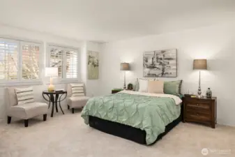This rare 4-bedroom townhome showcases one of the largest floor plans in the highly sought-after Pembrook Meadow community. A welcoming entry leads to an expansive private patio—perfect for enjoying morning coffee or unwinding with a good book. The main level is designed for both comfort and entertaining, featuring a spacious kitchen, living room, and family room, along with an oversized laundry room with abundant storage and two decks overlooking the backyard. Upstairs, the generous primary suite easily accommodates a king-sized bed and includes a 5-piece bath and walk-in closet. An additional primary suite complete this level. The versatile lower level offers a large open living area with a cozy fireplace, two spacious flexible-use bedrooms, and a full bath—ideal for guests or multi-generational living. Fresh interior paint and brand-new carpet create a bright, move-in-ready feel throughout. A 2-car garage provides ample storage and convenience. Community amenities include a clubhouse, indoor spa, outdoor pool, and tennis court. Well-managed HOA dues cover water, sewer, cable, common area and lawn maintenance.