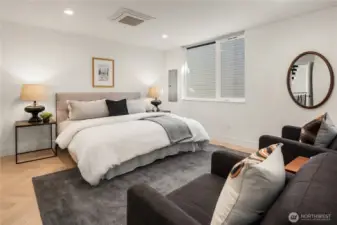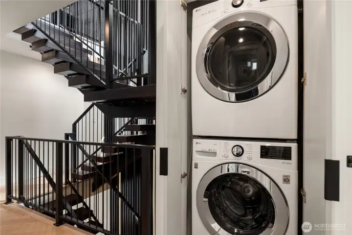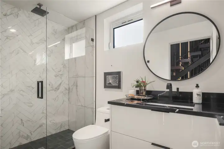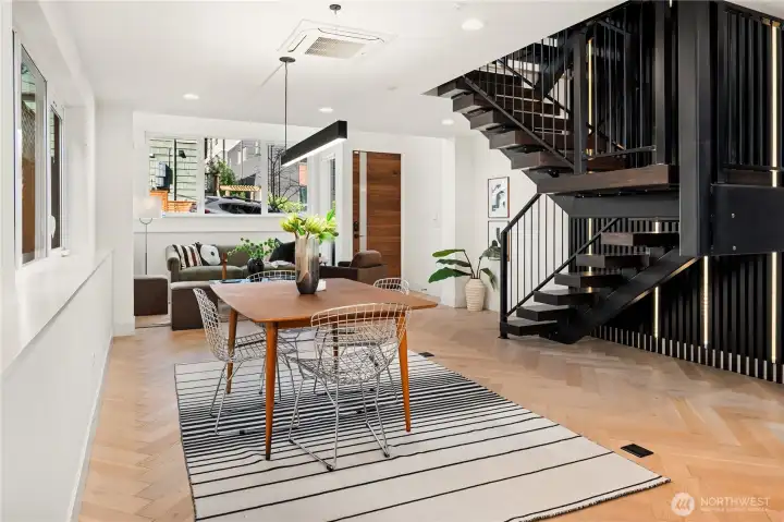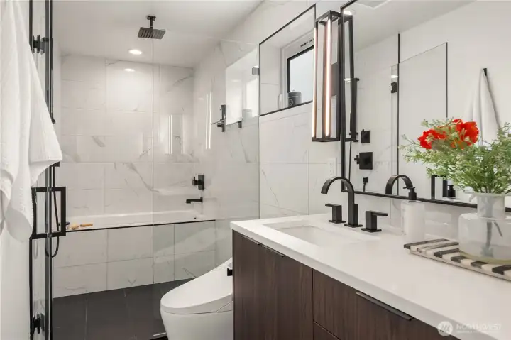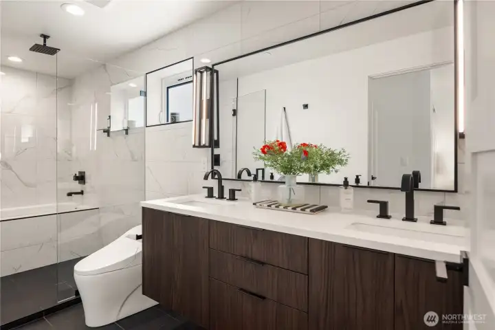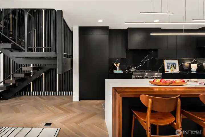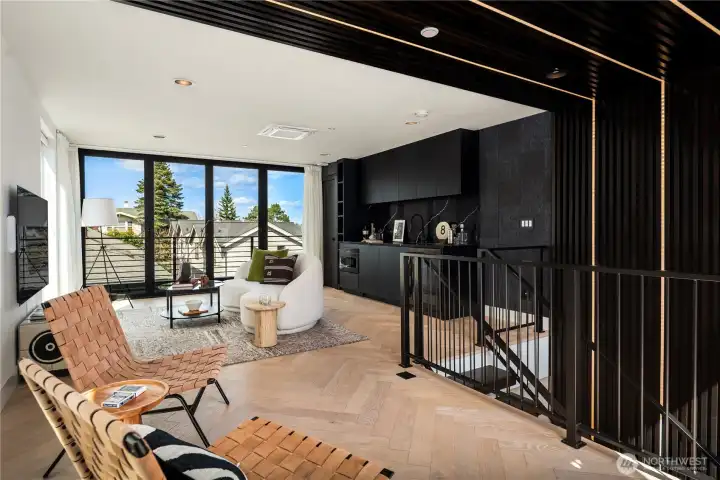 I was designed for someone who understands space, light, and the quiet confidence of exceptional architecture. Step inside and you’ll see what I mean. My ceilings stretch high above, my walls of glass dissolve the boundary between indoors and out, and every line, material, and finish has been considered—nothing here is accidental. I live in that rare space between bold and restrained. My main level flows effortlessly, anchored by a sculptural kitchen that is as functional as it is striking—integrated appliances, custom millwork, and a statement island that invites conversation amongst loved ones. Upstairs, I become more intimate. My primary suite is a study in calm: soft light, clean lines, radiant heated floors beneath your feet, and a spa-like bath that feels more boutique hotel than residence. Every detail is designed to slow you down. But when it’s time to look outward, I open up completely. My sky loft with Nanowall doors is an experience—expansive, private, and undeniably dramatic. The skyline, the water, the mountains. They don’t compete here, they compose. Day or night, it’s a setting that elevates everything. I’m intelligent too—quietly equipped with smart systems and energy-efficient design that work behind the scenes, never interrupting the aesthetic. Even my garage with EV plug is seamlessly integrated, because convenience should never come at the expense of design. Intentional. Walkable, vibrant, connected. I’m not just where you live. I’m how you live.
