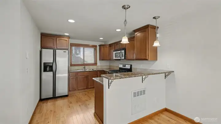 Located just north of Green Lake, Seattle's greatest hits are right out your doorstep - shopping, restaurants, parks, multiple bike/bus options & minutes to downtown...Or escape all the hustle & bustle to enjoy some peace & quiet in your fully fenced entry courtyard with lawn and garden space ensconced by mature landscaping. Classic craftsman-styling and thoughtful touches such as vaulted ceilings in the bedrooms provide a refreshing relief from the same modern-box townhomes that are carbon copied over & over again. Sunny southern exposure & prime end-unit location allow for added natural light. No home owners association, rare attached garage, full size washer and dryer, efficient gas hydronic heating and coveted gas stove.