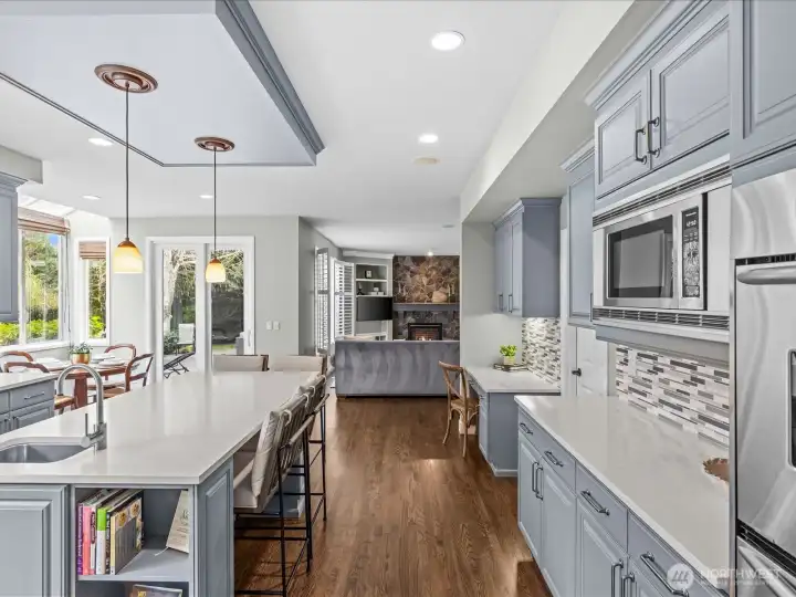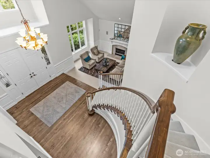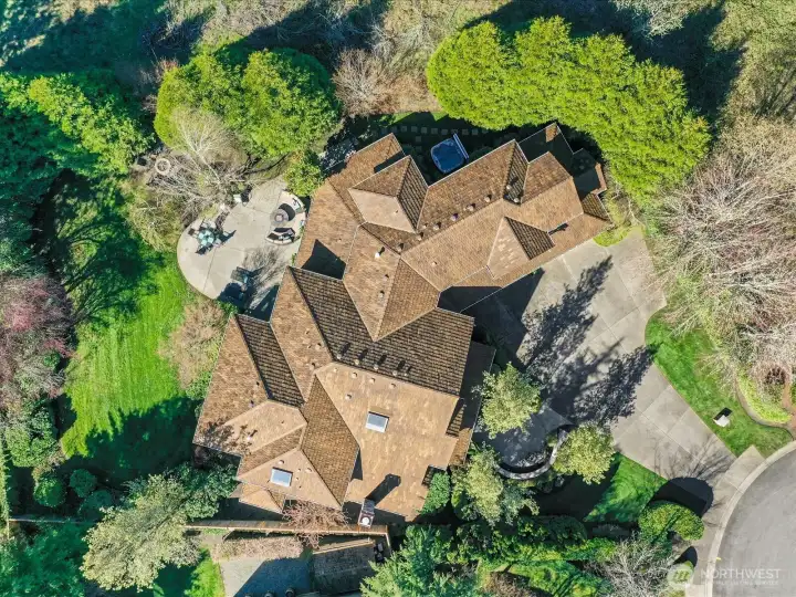 Tucked at the end of a quiet cul-de-sac in the coveted Aldarra Estates neighborhood, this beautifully appointed 5-bedroom, 4.5-bath home offers 4,816 sq. ft. and exceptional privacy on a .40-acre lot. The property is bordered to the west by protected natural space, while a scenic community park lies to the south. The backyard lives like a private retreat, with an expansive patio, hot tub, firepit area, and attached side shed for additional storage. Inside, the main level features an office/den offering an ideal work-from-home space, while the formal living room w/fireplace and gracious dining room create inviting spaces for entertaining. At the center of the home is an open-concept kitchen, complete w/a butler’s pantry, walk-in pantry, & breakfast nook, all opening seamlessly to the welcoming family room w/fireplace. A standout feature is the main-floor primary suite, offering a full bath, walk-in closet, & private exterior access (the owner has currently set up as a gym/workout space). The home includes two separate staircases leading to the generously sized primary suite, complete with its own fireplace, a 5-piece bath, a soaking tub, and 2 walk-in closets. 3 additional bedrooms, including one with its own private bath, + an additional full bathroom. A large bonus room w/wet bar provides the perfect space for recreation while enjoying views of the Cascade Mountains and Pacific Northwest Landscape. Additional highlights include a 4-car garage, A/C, and 2 new gas furnaces.