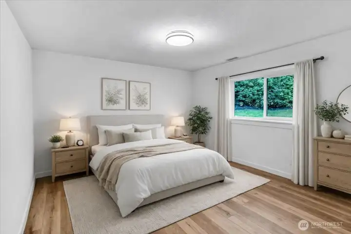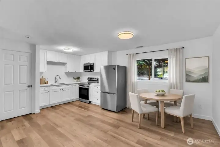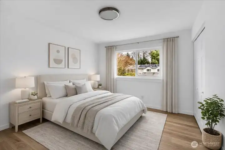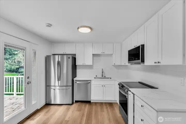 WOW! Fully renovated and move-in ready—an incredible opportunity to own a one-of-a-kind home! Featuring fully updated living space and a rare ADU opportunity with private entrance, second kitchen, and separate living area—ideal for multigenerational living or rental income. Bright main floor with large windows, spacious living room and updated kitchen with access to a large deck. Main level offers 3 bedrooms including a primary suite. Lower level includes additional living space, bedroom, bath, and private access. Includes all appliances in both kitchens plus separate washer & dryer sets for each level. Everything feels, looks and smells as new - beautifully renovated throughout. Situated on a flat, large lot in a quiet cul-de-sac in a peaceful neighborhood with large parking, patio. No HOA. Conveniently located between main freeways, and near shopping, dining, and parks. A rare chance to own a home that offers flexibility, comfort, and long-term value—don’t miss it!