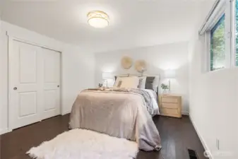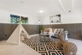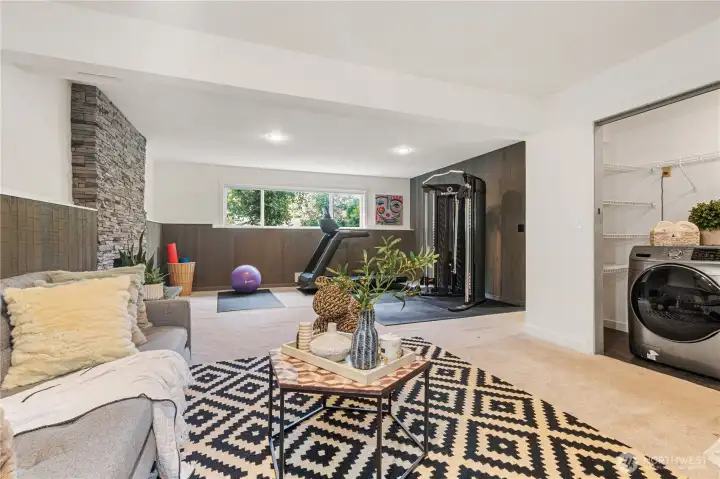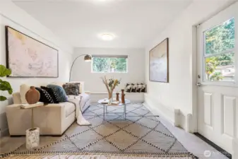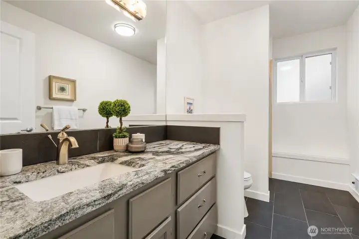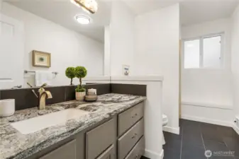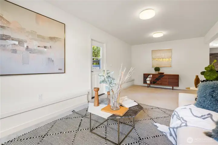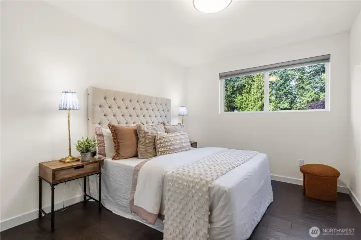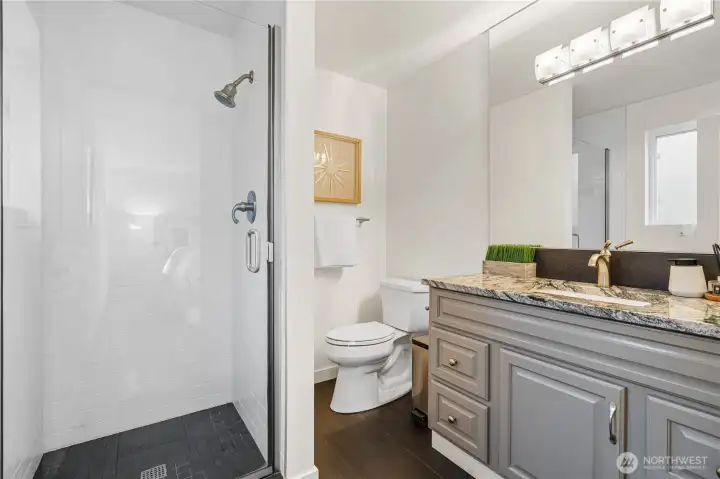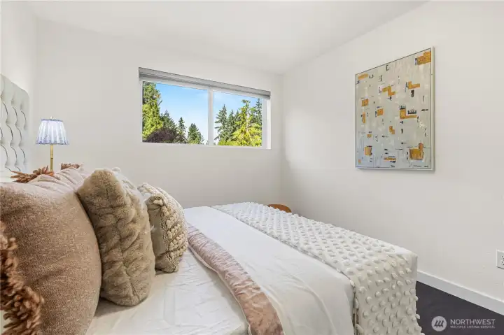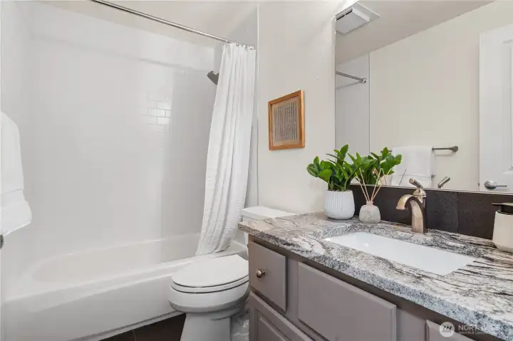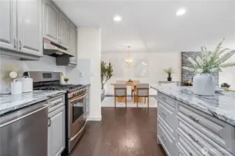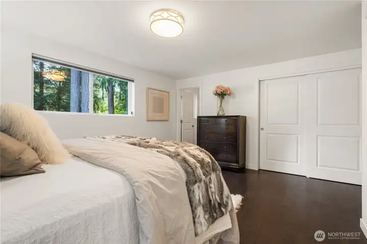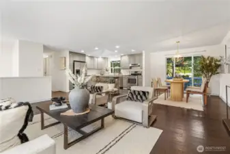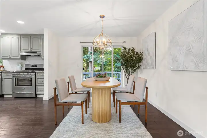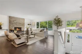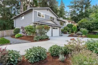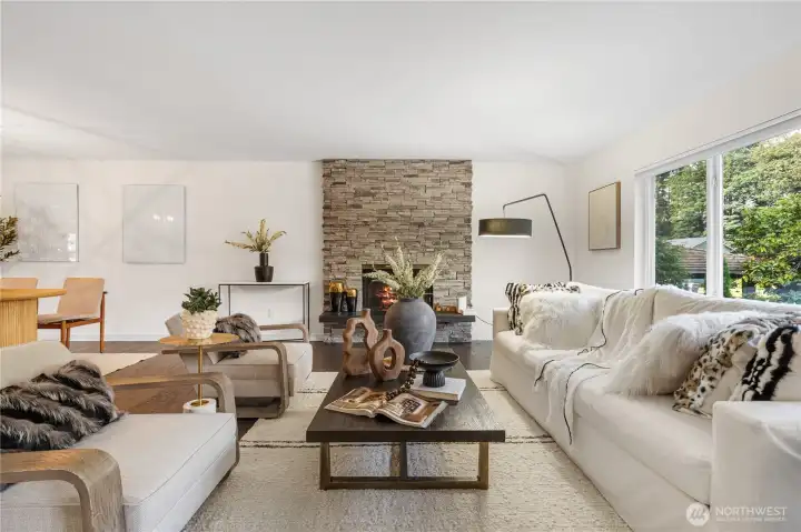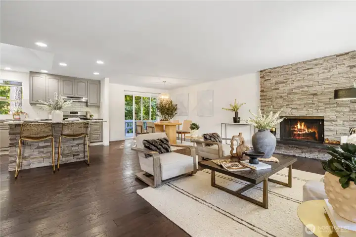 Welcome to this beautifully updated Kirkland corner-lot home backing to a lush greenbelt, offering the privacy, space, and comfort today’s buyers are looking for. The open-concept main level is ideal for everyday living and gathering, featuring a spacious kitchen with granite countertops, stainless steel appliances, and engineered hardwood floors that flow through the kitchen, dining, and living areas. The sun-filled living room is warmed by a dramatic floor-to-ceiling stone fireplace and framed by large picture windows that bring in abundant natural light. Upstairs, the primary suite includes an en-suite bath, while three additional bedrooms provide flexibility for household members, guests, or a home office. The lower level offers two generous bonus/family rooms, a second floor-to-ceiling stone fireplace, and walk-out access to the backyard—perfect for play, relaxation, or multi-use living. Enjoy year-round comfort with A/C, plus recent updates including fresh interior paint, a new driveway, and a freshly painted two-tier deck overlooking the peaceful greenbelt. Fully fenced yard. Conveniently located minutes to Totem Lake, I-405, Bellevue, parks, shopping, dining, and daily amenities.