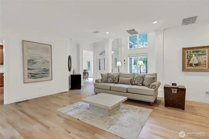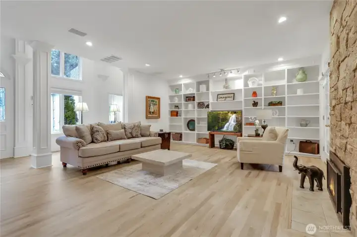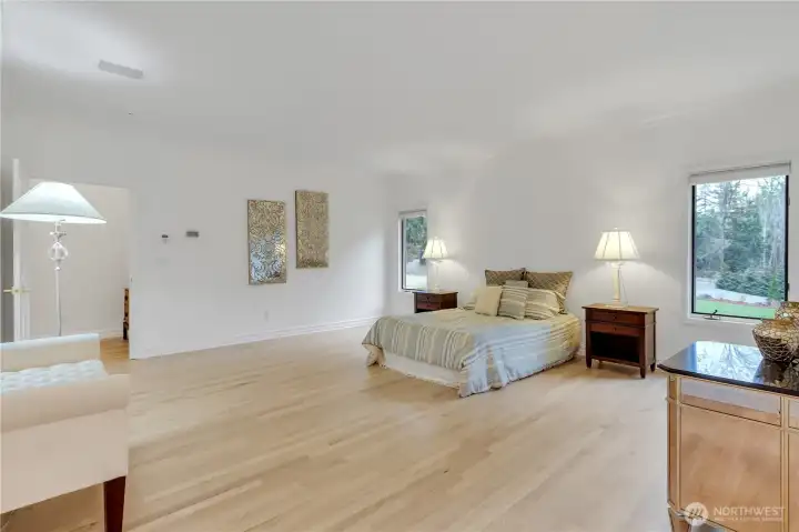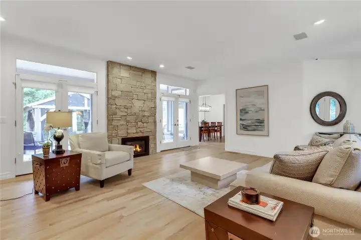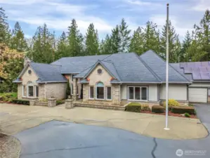 Warm, Gated French Country Contemporary Single Story! Experience European elegance and modern luxury in this secluded estate. Situated behind gates on 2.5 fully fenced acres, this 3,350 sf home is designed for grand entertaining and quiet sanctuary. Architecture is defined by volume and light, featuring 10'+ ceilings, transom and Palladian windows that bathe the interior in natural light with verdant views. The home boasts recently finished oak hardwoods and new carpet in the office. A sophisticated layout includes formal living and dining rooms, a large home office for remote work, and a spacious family room. Accommodations include 3 generous bedrooms (one ensuite), a powder room, and a continental-style bathroom. Central duct heating and cooling in zones. Designed for the serious chef, the kitchen features quartz countertops, a butcher-block island, a 36-inch propane range with exterior-vented hood, and two additional wall ovens. The estate is engineered for sustainability with a backup generator and solar panels to reduce energy costs. An on-site propane tank services the range and fireplaces. Ample off-street parking offers room for a future RV shop or outbuilding. While the grounds feel deeply private, you are never isolated. Located 10 minutes from dining and shopping, and 15 minutes from Issaquah Highlands, Swedish Hosp, and downtown Fall City, this home offers a rare balance of rural retreat and urban convenience.