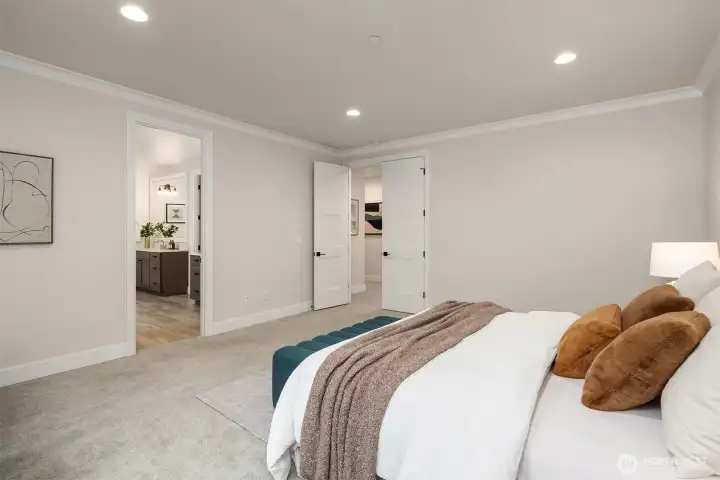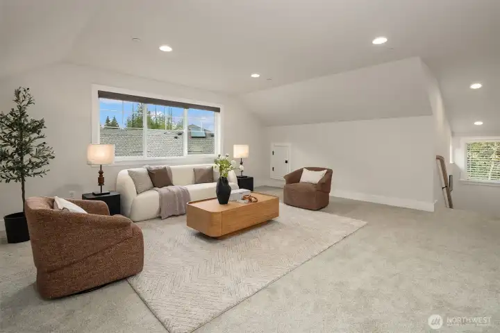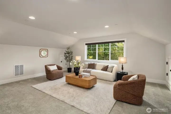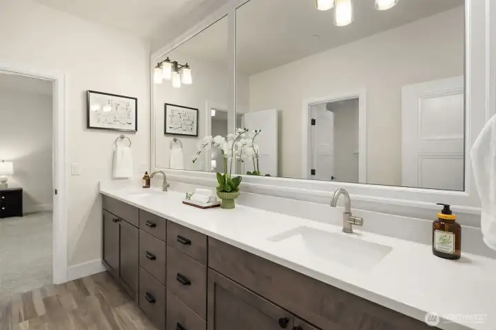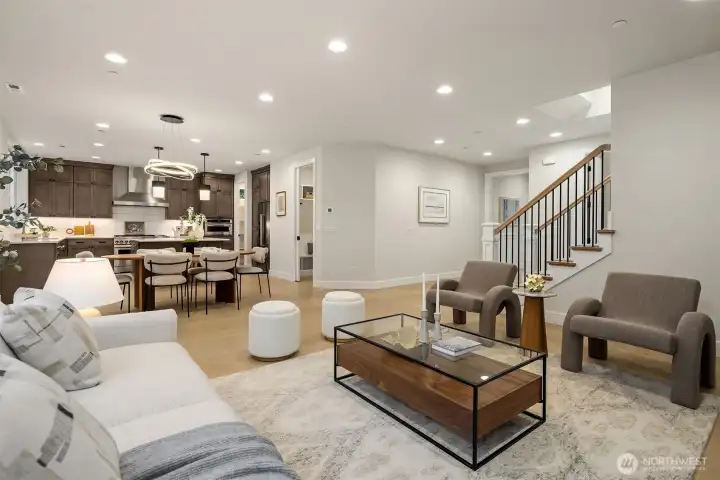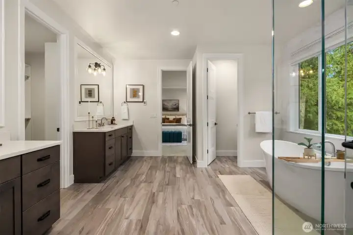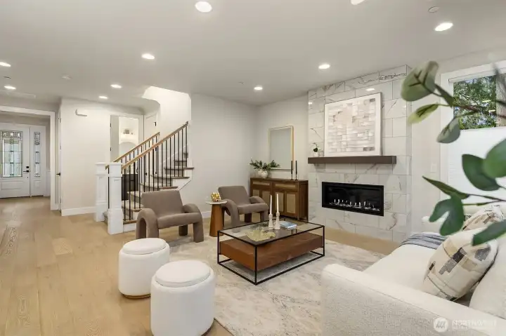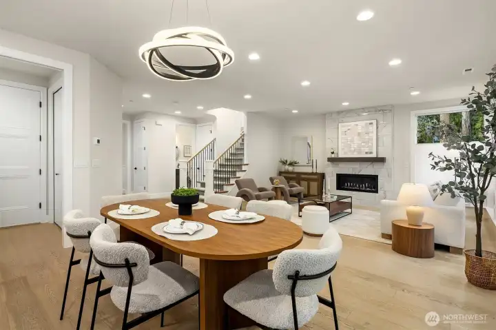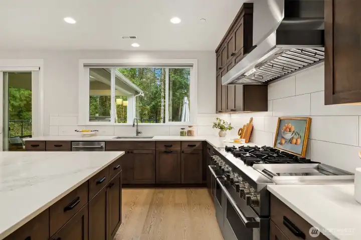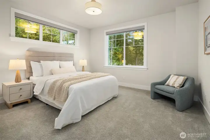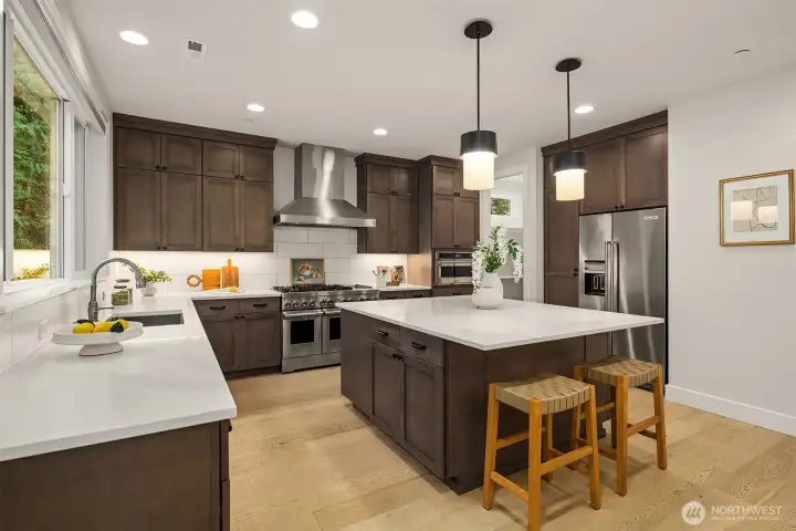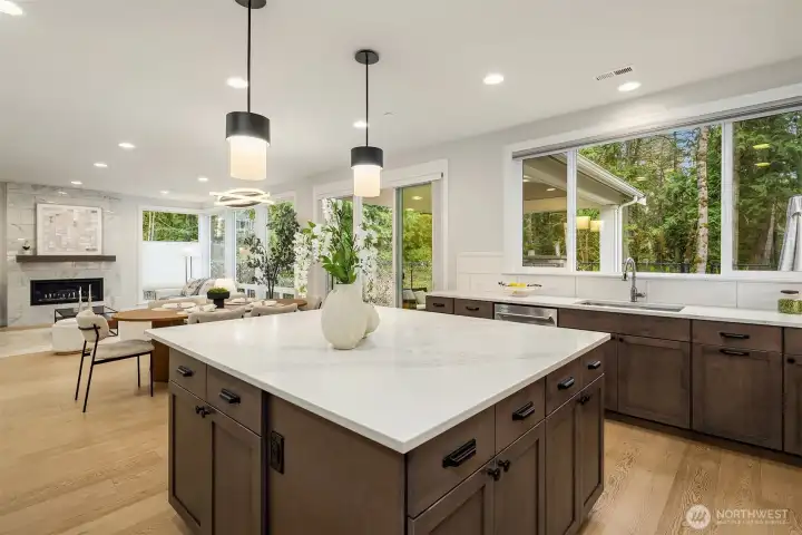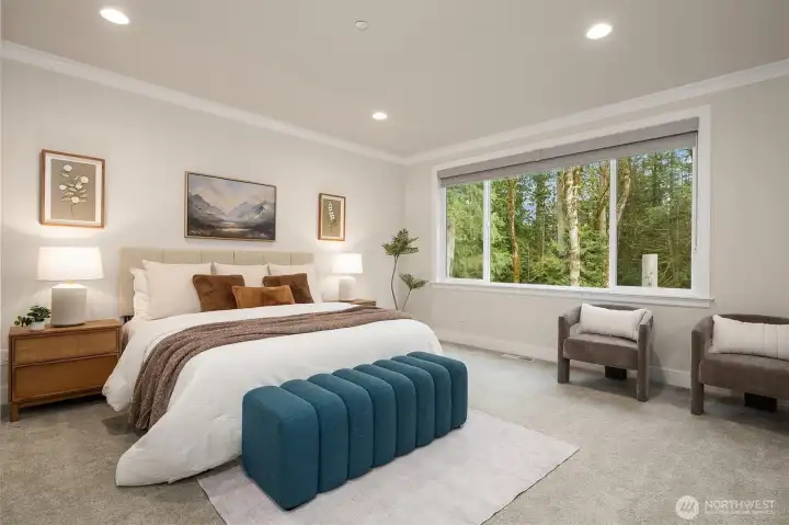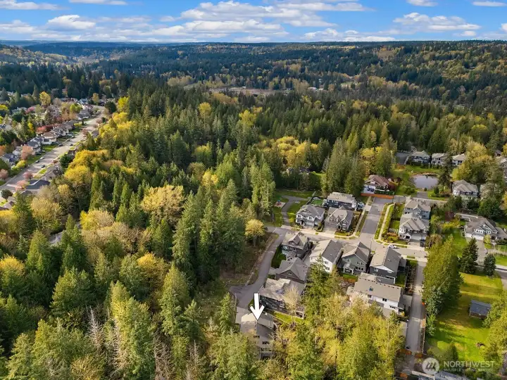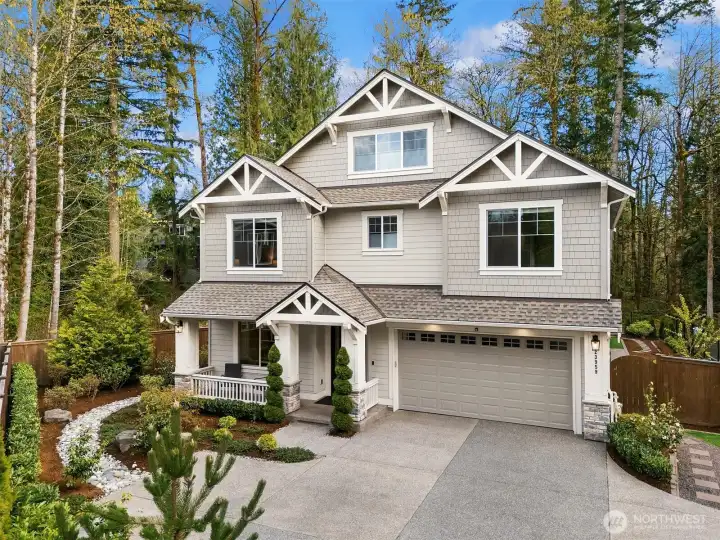 Better than new Murray Franklin resale in a beloved Sammamish neighborhood, offering the perfect blend of sophisticated design and natural serenity. Tucked away at the end of a quiet drive and bordered by protected green belts on three sides, this exceptional 4-bedroom, 3.5-bath home provides rare privacy and peace of mind. Step inside to an open-concept layout filled with high-end finishes and effortless comfort. The chef’s kitchen shines with premium appliances, ideal for everyday living and entertaining. Enjoy year-round comfort with central A/C, while the luxurious primary suite serves as a true retreat, complete with a spa-inspired bath featuring heated floors. Designed for modern living, this Smart Home-ready residence includes Ethernet in every room, ultra-fast Fiber internet, and whole-house blinds with motorized and automatable treatments across the main level. The garage is equipped with a dedicated EV charging outlet. Outdoor living is effortless with professionally designed, low-maintenance landscaping and premium artificial turf for year-round greenery. Located within the highly rated Lake Washington School District and less than a mile to WA-202 for easy access to Redmond and Bellevue, this home offers an unmatched combination of privacy, convenience, and lifestyle.