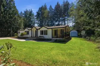 Welcome to this picture-perfect Pacific Northwest beauty! Stunning, usable flat 1.25 acres in serene Lakebay. Recently remodeled, the seller spared no expense - 2076 sqft of pure bliss! Spacious 3-bedroom plus bonus room/den. Primary has ensuite 5-piece bathroom. New roof, flooring and paint throughout, updated bathrooms and new lawn sprinkler system. Ample parking and a brand new 14x14 shed. Private backyard with stamped concrete pathways leading to a beautiful patio for entertaining. PLUS county has indicated that an ADU can be permitted - seller has a set of building plans and an approved 2-bed septic system permit. There is also a second water connection available for this lot. Hurry on over!