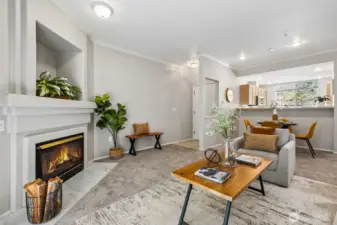 Welcome to Sundance at Klahanie—where convenience, lifestyle + community come together in one of Sammamish’s most sought-after neighborhoods. Ideally located, this 1-level condo offers easy living w/a highly desirable layout + the bonus of 2 assigned parking spots —your own rare 1-car garage w/storage, & a covered carport just steps from the front door. Freshly updated throughout, this home shines w/all new neutral paint + brand new flooring for a modern feel. Meticulously maintained over the past 25+ yrs, it offers true move-in ready confidence. The kitchen includes tiled countertops, abundant maple cabinetry + great prep space, opening comfortably to the main living + dining area w/gas fireplace. Step outside to your private patio overlooking a peaceful greenbelt—complete w/walking trails that invite you to unwind in nature right outside your door. Primary suite has 2 closets + attached full bath w/dual sinks + tiled counters. Two additional bedrooms provide flexibility for guests, office, or hobbies, plus a full hallway bath to serve the space. A full-size washer/dryer utility closet adds everyday convenience + super-efficient hydronic heating system. Living in Klahanie means a lifestyle: miles of scenic trails, multiple parks, playgrounds, sport courts & pools. Sundance residents also enjoy their own amenities: clubhouse, fitness center & pool. Minutes to grocery, dining, coffee shops + everyday essentials, plus easy access to Issaquah, Sammamish + major commuting routes.