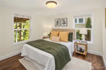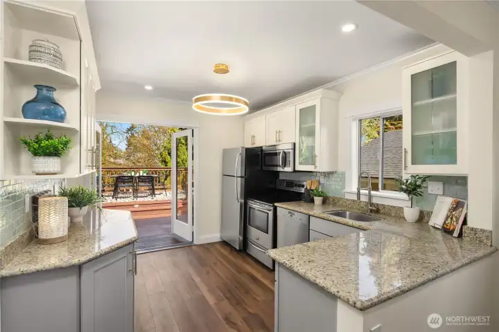 Classic Craftsman architecture paired with inviting indoor-outdoor living in a hard-to-beat neighborhood. A welcoming covered front porch introduces warm, light-filled interiors where the living & dining spaces flow comfortably together. Crown molding, generous windows & a fireplace create a classic gathering space that reflects the home’s timeless character. The updated kitchen anchors the main level & connects directly to the outdoors through French doors, extending daily living & entertaining beyond the interior. Step outside to the expansive deck - an ideal setting for outdoor dining, weekend gatherings, or relaxed evenings surrounded by greenery. Below, the backyard offers a rare sense of privacy with mature landscaping & multiple spaces to unwind, including a fire pit gathering area that creates a quiet retreat away from the pace of the city. The lower level adds flexibility with a private bedroom & bath, well suited for guests, home office needs, or additional living space. A dedicated laundry area & generous storage provide everyday practicality. Moments to Tangletown with convenient access to Green Lake, Wallingford & a wide range of neighborhood cafés, restaurants & local amenities. Multiple transit routes & nearby light rail connections provide straightforward access throughout Seattle A timeless Craftsman offering classic architectural character, generous outdoor living & a location that places some of Seattle’s most vibrant neighborhood destinations close at hand