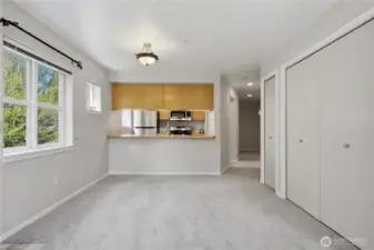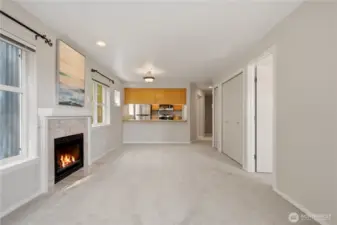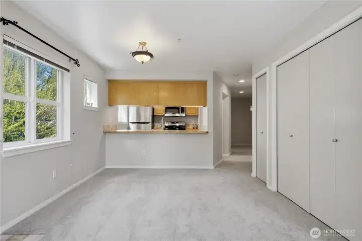 2 bed 2 bath light filled SW conor unit in Pegasus Court of Pinehurst neighborhood. New light rail station is scheduled to open in mid 2026. Bright and quiet, cozy and warm. Fireplace, secured entry, all Brand New Stainless Steel Appliances. Washer and Dryer in unit. Brand New plumbing system for whole building, brand new carpet. Well managed HOA. Well maitained condition. Minutes walking distance to the new transit station and bus stops. Easy access to free way. Assigned park and storage.