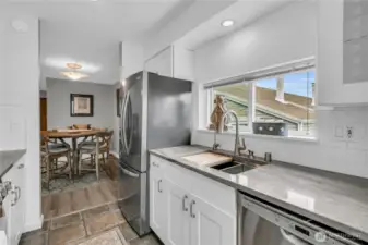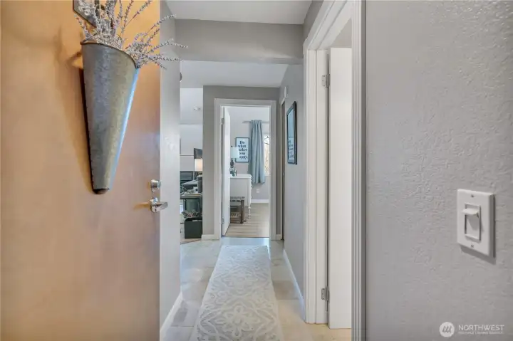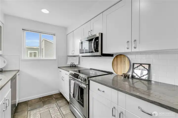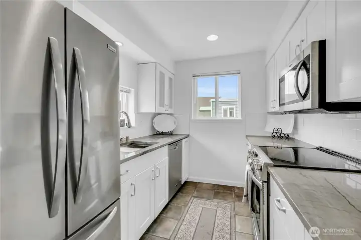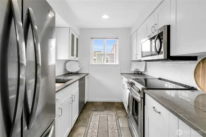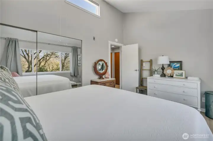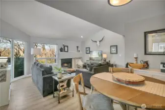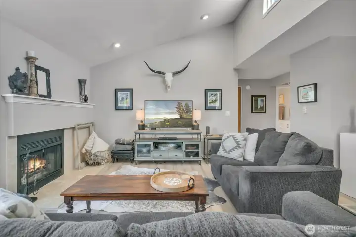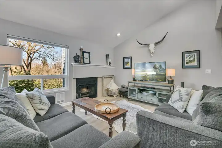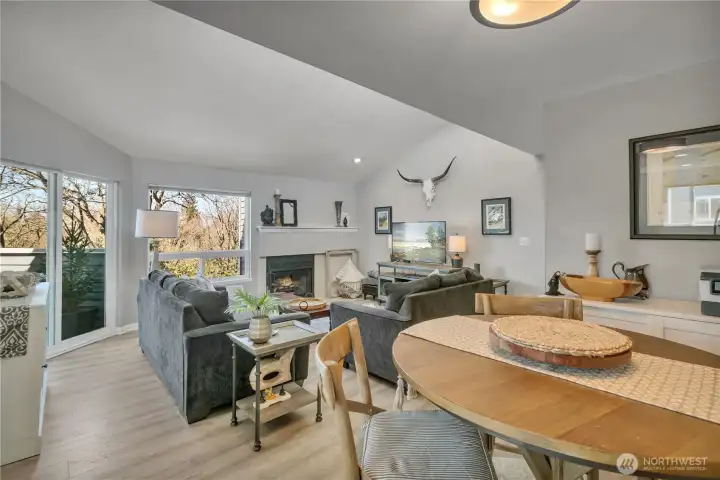 This newly updated top-floor corner unit is in the coveted Spyglass Condominiums! Nestled in downtown Des Moines, you are just moments away from the marina, delectable restaurants, and fantastic retail therapy. Updates include plank flooring in the bedrooms, living, and dining areas, and fresh paint. Newer appliances, including full-size washer and dryer! With two bedrooms and soaring vaulted ceilings, this condo is bathed in abundant natural light. Cozy up by the warm wood-burning fireplace or bask in the glorious sunshine on your covered balcony/deck overlooking the greenbelt. Enjoy the peace of mind provided by this secure building and parking garage. Your assigned parking space is right at the bottom of the stairs.