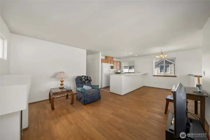First time on the market, this stand-alone condo offers comfort and convenience in a peaceful gated community with low HOA dues. Designed for easy living, all main spaces are on the upper level, featuring an open-concept great room filled with natural light, a cozy gas fireplace, and a dining area that opens to a private balcony, ideal for relaxing or entertaining. The kitchen includes generous cabinet and counter space along with a breakfast bar. The primary suite offers a private bath, with two additional bedrooms and a second full bath with laundry nearby. On the entry level, you’ll find additional storage and access to the attached oversized two-car garage. A fully fenced yard and HOA-maintained landscaping add to the low-maintenance appeal. Conveniently located near shopping, dining, public transit, freeway access, and JBLM, this home delivers the perfect combination of privacy, comfort, and accessibility.